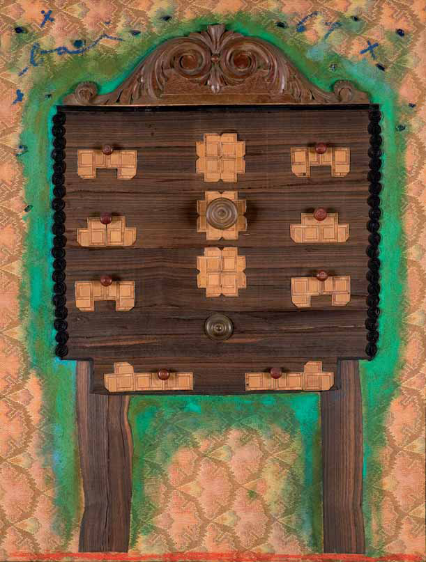 Enrico Baj Milano 1924 – Vergiate 2003 Meuble, piece of forniture, 1961 tecnica mista e legno su tela, cm 95x72. Firmato in alto a sinistra: Baj. Datato in alto a destra: 61. Titolato e datato al verso: “Meuble” 1961. Provenienza: Roma, Condotti 75-Galleria d’Arte Contemporanea (etichetta al verso). Esposizioni: Firenze, Galleria d’arte Spagnoli, Enrico Baj, settembre-ottobre 1974; Verona, Palazzo Forti, Galleria d’arte Moderna e Contemporanea, Enrico Baj: Profili, 1983; Genazzano, Castello Colonna di Genazzano. Polo Museale Internazionale per l’Arte Contemporanea, Cross-roads. Incroci, 31 marzo-24 giugno 2001. Bibliografia: E. Crispolti, Catalogo generale delle opere di Baj, Giulio Bolaffi Editore, Torino 1973, n. 794, p. 121; Enrico Baj, catalogo della mostra, Firenze, Galleria d’Arte Spagnoli, Milano 1974; Enrico Baj: Profili, catalogo della mostra, Palazzo Forti, Galleria d’arte Moderna e Contemporanea, Verona 1983; O. Paz, Baj: ”Mobili e Boiseries”, 1960-1962, Studio Marconi, Milano 1989, p. 21; Cross-roads. Incroci, catalogo della mostra, a cura di A. Boatto, G. Mercurio, Campisano Editore, Roma 2001, n. 54, p. 86 riprodotto; G. Huber, Enrico Baj und die Künstlerischen Avantgarden, 1945-1964, Gebr. Mann Verlag, Berlino 2003, n. 110, p. 206 riprodotto.