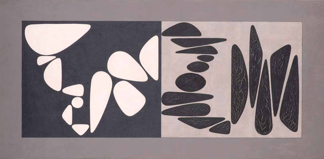 Victor Vasarely Pécs 1906 – Parigi 1997 Cailloux 2, 1952 olio su tavola, cm 47x92. Firmato in basso al centro: Vasarely. Titolato, datato e firmato al verso: “Cailloux – 2”, 1952 – Vasarely. Provenienza: Bologna, Galleria d’Arte De’ Foscherari Franco Semenzato, Venezia, asta 9, 22 novembre 1981, Importanti dipinti moderni e contemporanei – Grafica, lotto 318. Esposizioni: Genazzano, Castello Colonna di Genazzano. Polo Museale Internazionale per l’Arte Contemporanea, Cross-roads. Incroci, 31 marzo-24 giugno 2001. Bibliografia: Giancarlo Tonelli. Scelte da una collezione, in “Art Diary Italia”, Giancarlo Politi Editore, Milano 1991; MAC/Espace: arte concreta in Italia e in Francia 1948-1958, catalogo della mostra, a cura di L. Berni Canani, G. Di Genova, Ed. Bora, Bologna 1999, p. 29; Cross-roads. Incroci, catalogo della mostra, a cura di A. Boatto, G. Mercurio, Campisano Editore, Roma 2001, n. 146, p. 159 riprodotto. Certificato di autenticità firmato dall’artista in data: 17 maggio 1972, verificato dall’Archivio Vasarely in data: 10 febbraio 1997.