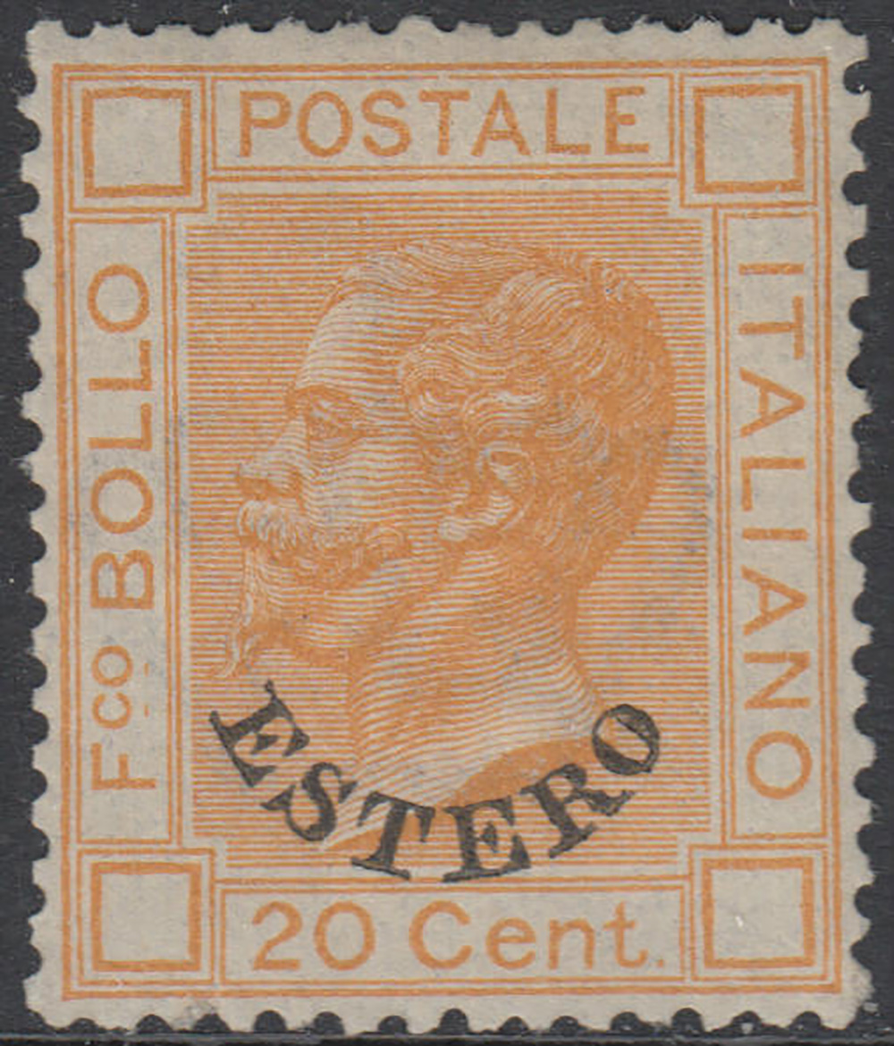 [UFFICI POSTALI ALL'ESTERO] 1878 Levante, emissioni generali, 20c. arancio. Da esaminare. G. Oliva, Em. Diena, A. Diena MNH..........(Sass. 11)
