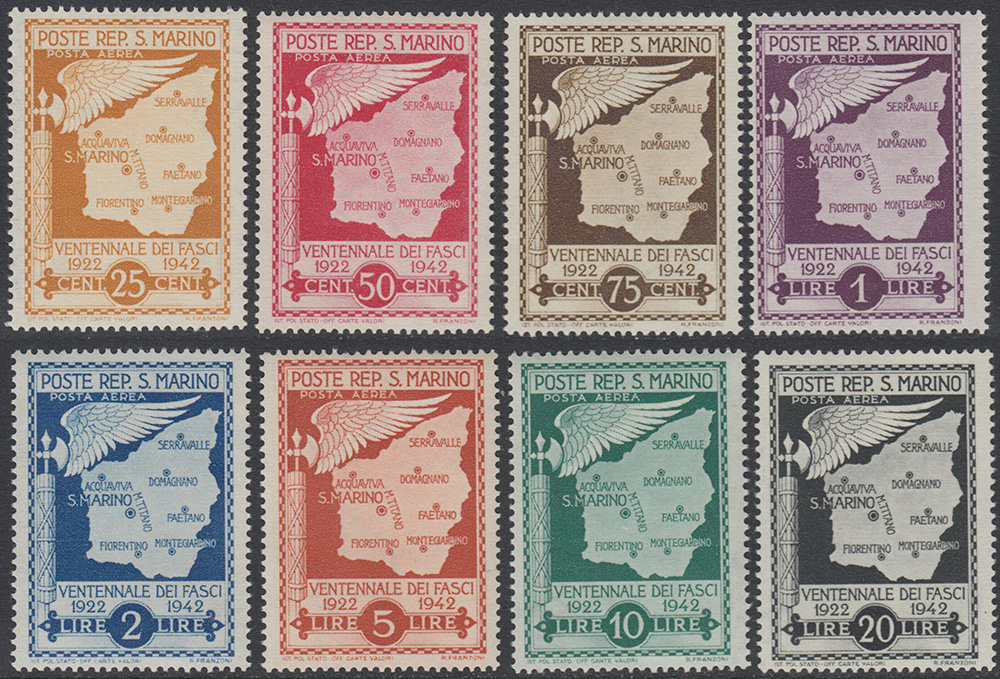 [SAN MARINO] 1943 Posta aerea, "Ventennale dei fasci sammarinesi", serie...