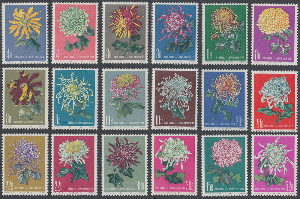 [CINA] 1960/1961 "Crisantemi", serie completa 18 valori. Da esaminare....