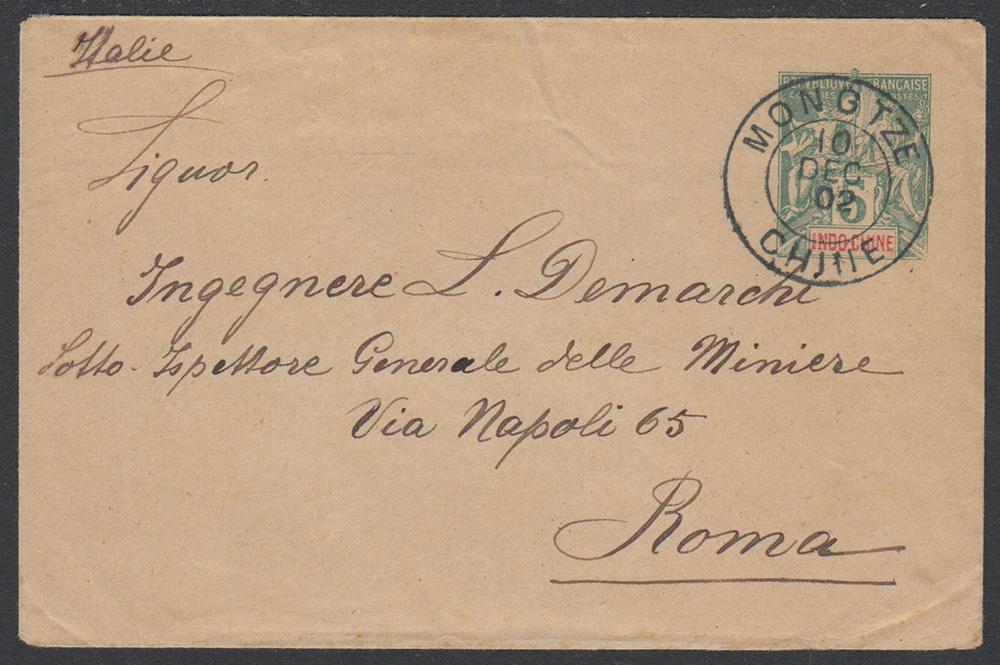 Lotto 1324 | [INDOCINA] 1902 (10 dic.) Busta postale da 5c. verde da Mongtze, via Lao-Kai...