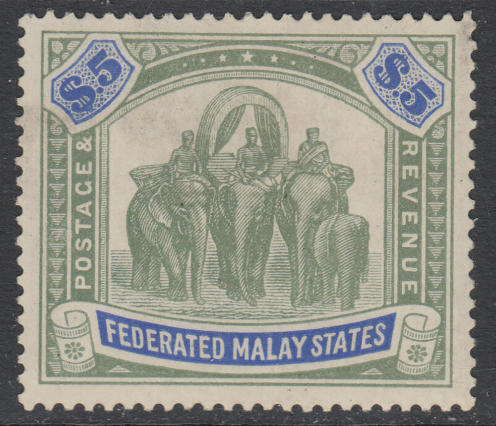 Lotto 1327 | [MALESIA] 1925 Federated Malay States, $5 verde e blue, filigrana Mult Script...
