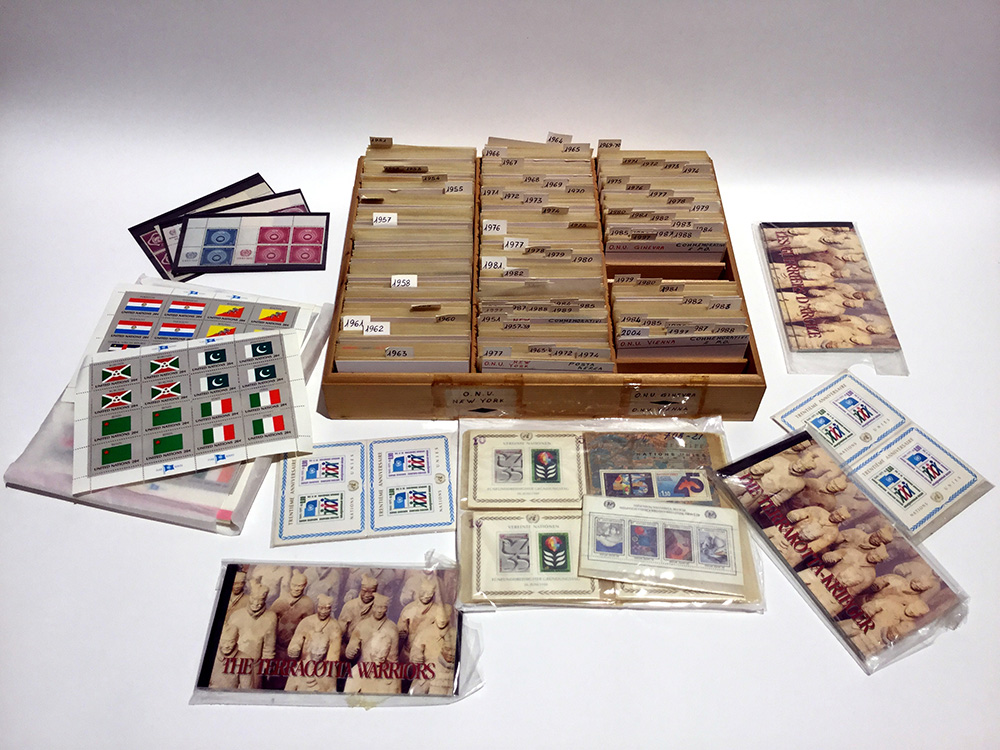 [NAZIONI UNITE] 1951/2004 Lotto del periodo composto da francobolli, foglietti e libretti dei tre uffici, New York, Ginevra, Vienna in bustine di pergamino. Allegato conteggio di catalogo eseguito dal committente. Da esaminare. MNH..........(Un. Ä10'850)