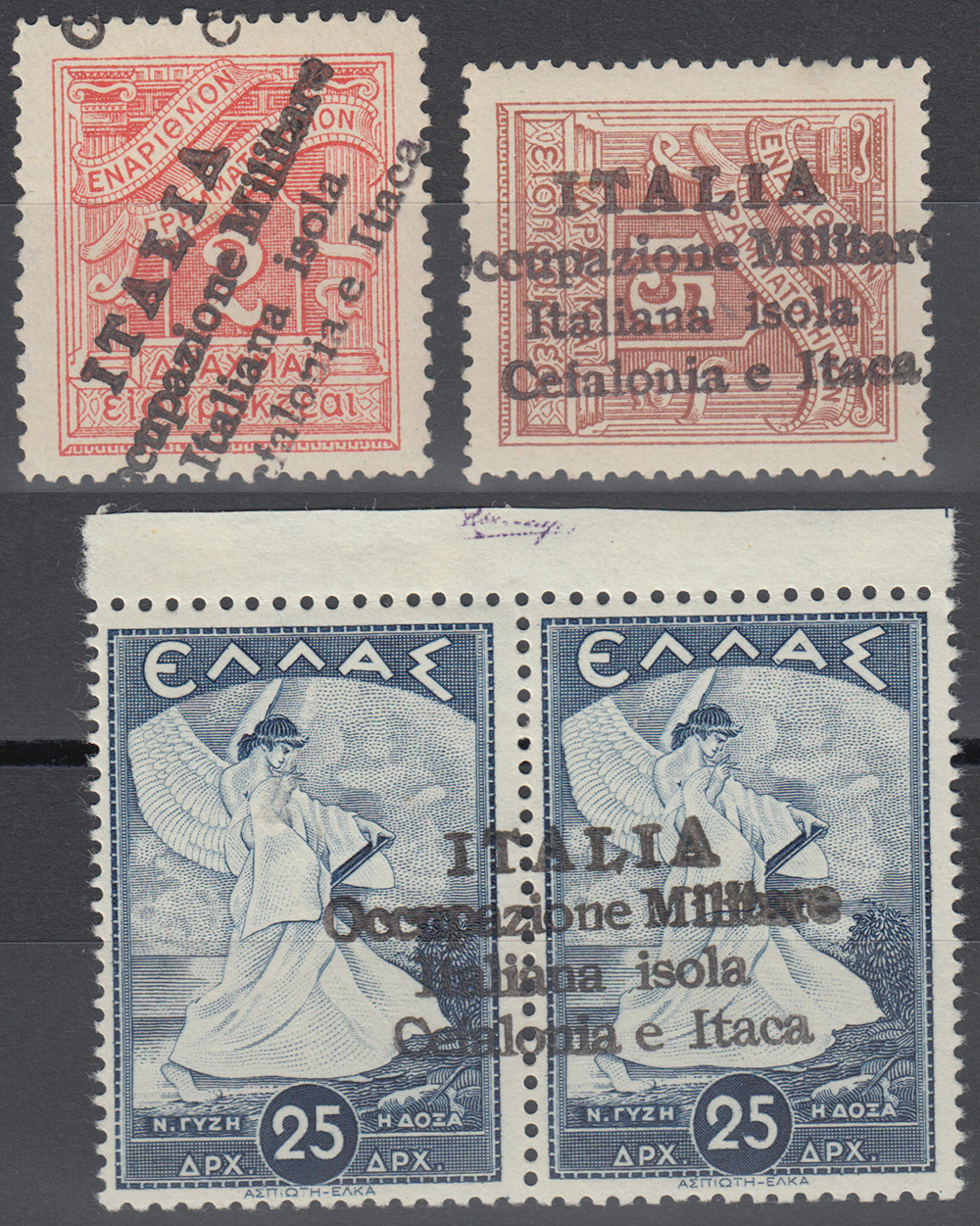[CEFALONIA E ITACA] 1941 Lotto composto da 3 rari esemplari con soprastampa...