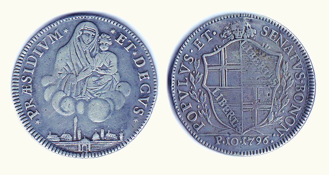 BOLOGNA - Governo Popolare 1796 - Da 10 Paoli; D/ Madonna con Bambino...