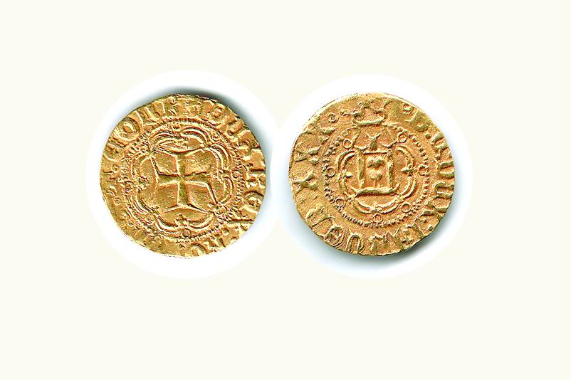 GENOVA Battista di Campofregoso doge XXX (1478-1483) Ducato D/Castello sovrastato da compasso entro cornice di archi; R/Croce patente entro cornice di archi - Lun 124. Rarità: RR - Metallo: AU - Conservazione: BB+