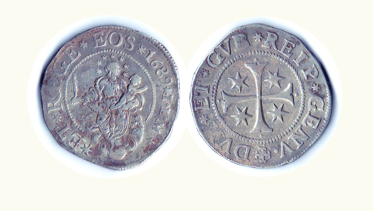 GENOVA - Dogi Biennali - Scudo stretto 1689 * I * L * M *; D/ Croce accantonata da 4 stelle; R/ Madonna con Bambino - Lun 260. Metallo: AR - Conservazione: BB