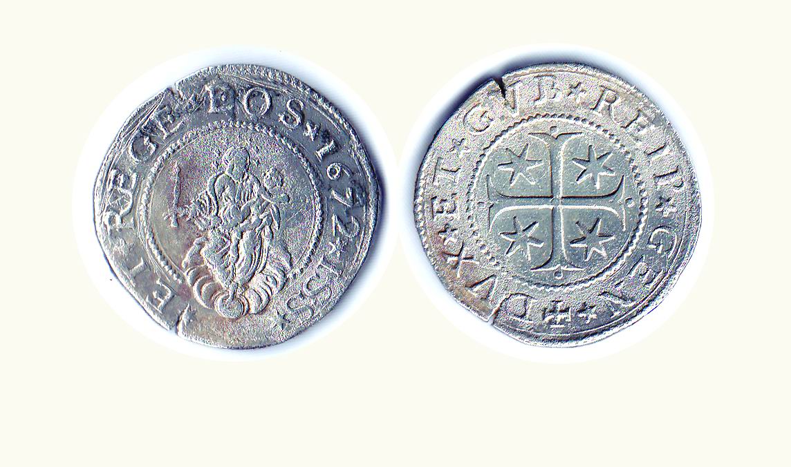 GENOVA - Dogi Biennali - 1/2 Scudo stretto 1672 - Ribattuto su altro. Rarità: RR - Metallo: AR - Conservazione: BB+/q.SPL