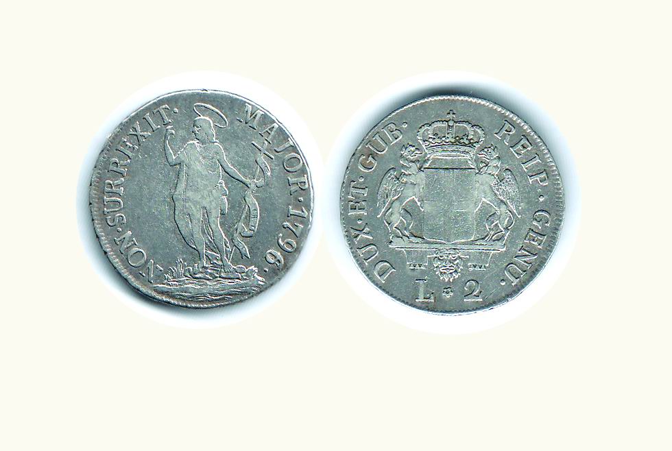GENOVA - Dogi Biennali - 2 Lire 1796 (tipo nuovo) D/Stemma coronato tra...