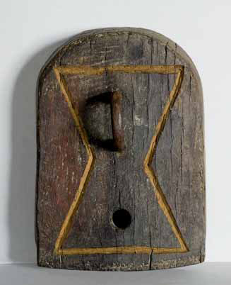 Michelangelo Pistoletto Biella 1933 Segno chiave-Segno arte, 1999 legno e ferro, cm cm 34,8x24,5x13. Titolato, firmato e iscritto al verso: Segno chiave, 999 Pistoletto, Segno Arte, il segno per entrare nell’arte. Anno Uno a Pescara.