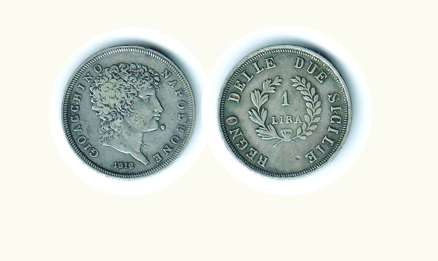 NAPOLI - Gioacchino Murat - 1 Lira 1812; D/ Testa a d.; R/ Valore - P.61. Rarità: R - Metallo: AR - Conservazione: BB+