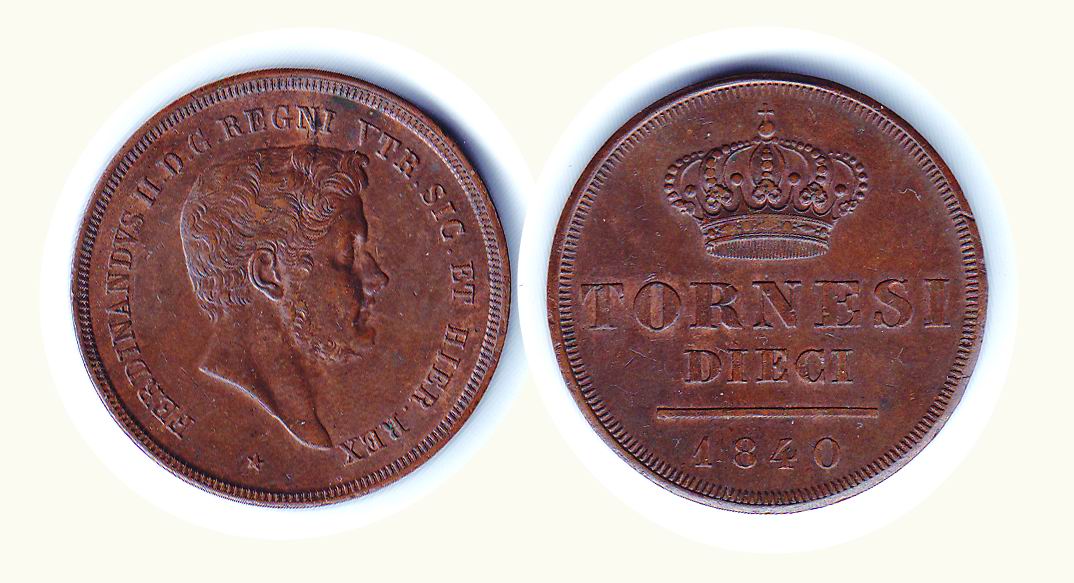 Lotto 264 | NAPOLI - Ferdinando II - 10 Tornesi 1840. Metallo: Ae - Conservazione: SPL+