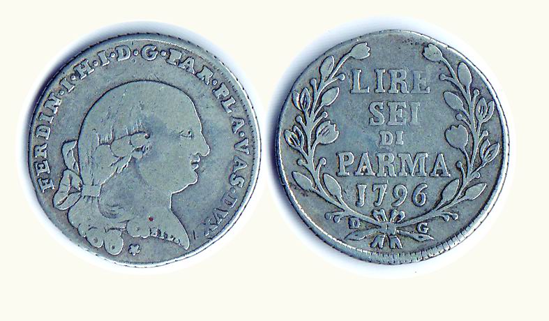 PARMA - Ferdinando di Borbone - 6 Lire 1796. Rarità: R - Metallo: AR - Conservazione: q.BB/BB