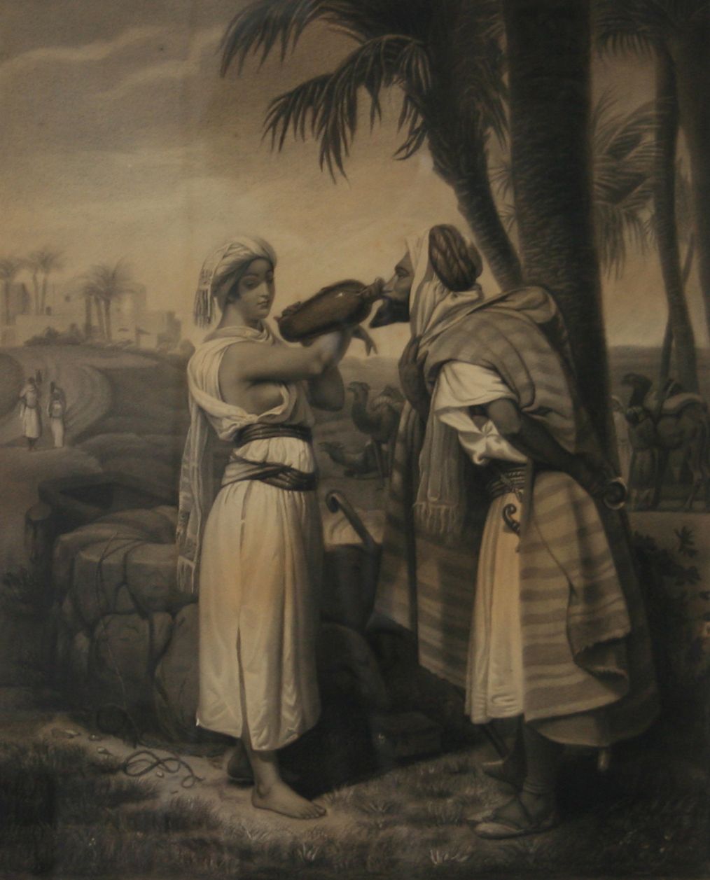 AUTORE NON IDENTIFICATO "Rebecca e Eliezer" 1849 51x41 disegno a carboncino...