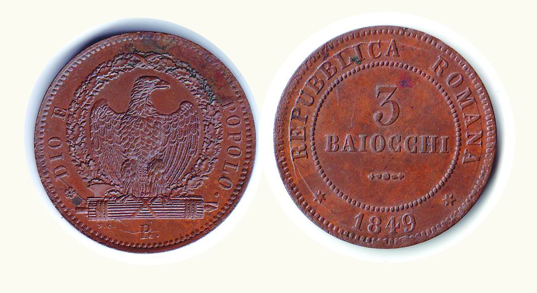 ROMA - II Repubblica Romana - 3 Baj - Residui rame rosso. Metallo: Ae -...
