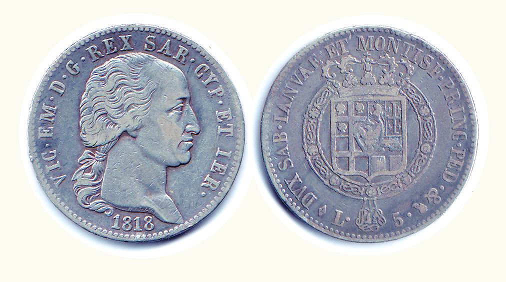 VITTORIO EMANUELE I - 5 Lire 1818 TO - P.12. Rarità: R - Metallo: AR -...