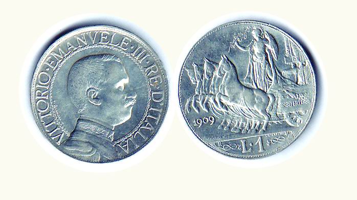 VITTORIO EMANUELE III - Lira 1909. Rarità: R - Metallo: AR - Conservazione: q.FDC