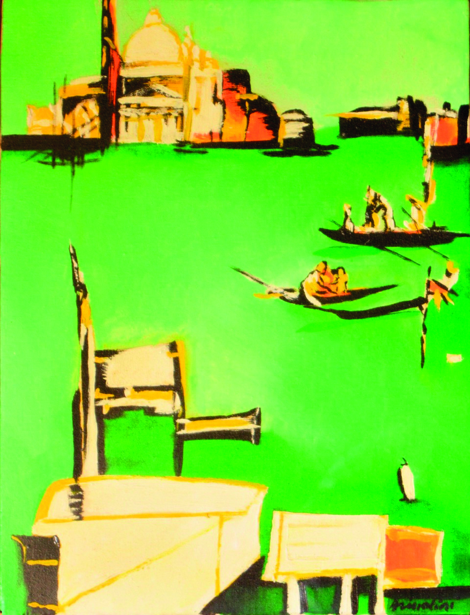 Remo Brindisi "Venezia" olio su tela 40x30 autentica dell'art. su foto