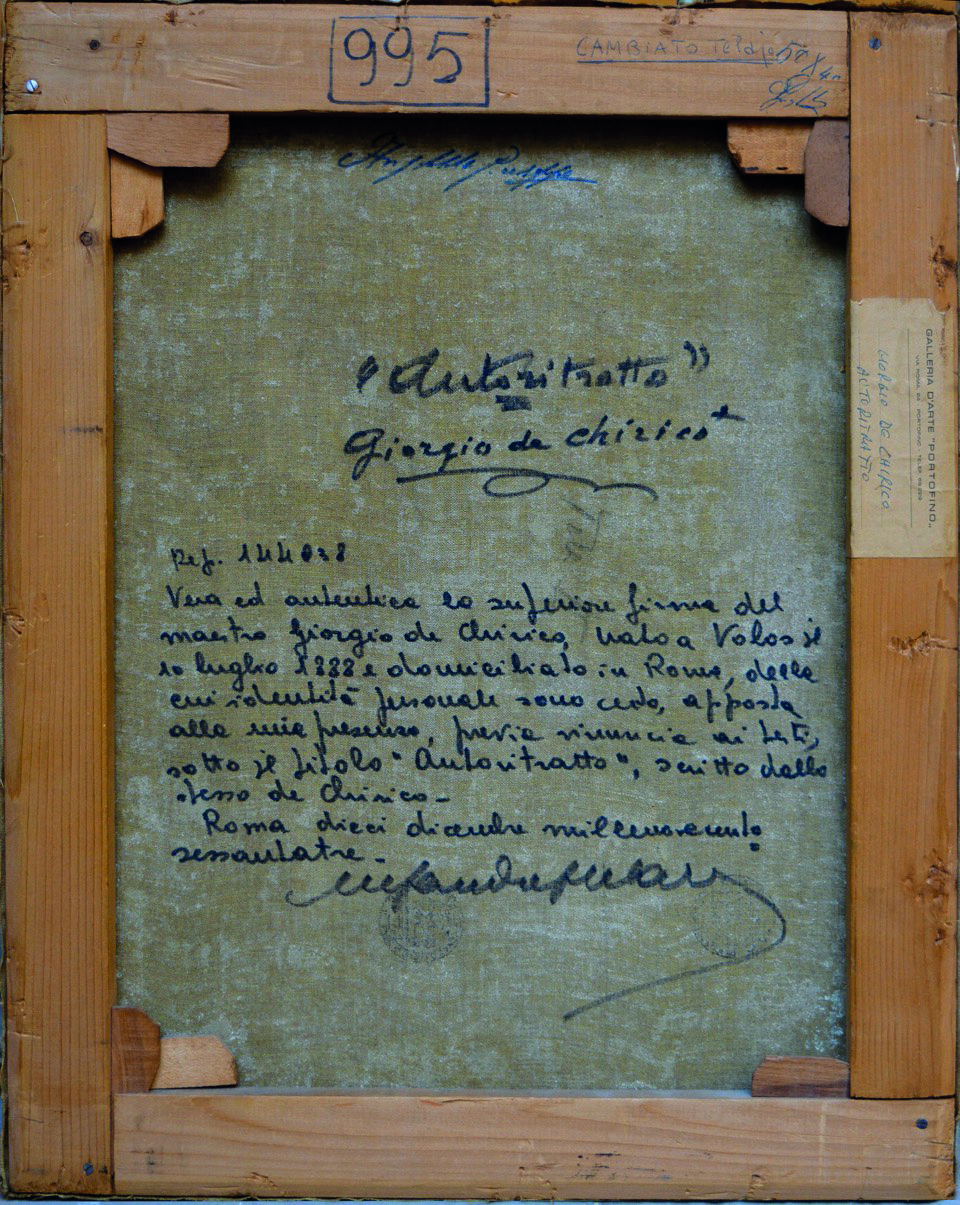 Giorgio De Chirico olio tela cm 50x40 "Autoritratto" 1960 pubblicato su catalogo Generale N° 703/704