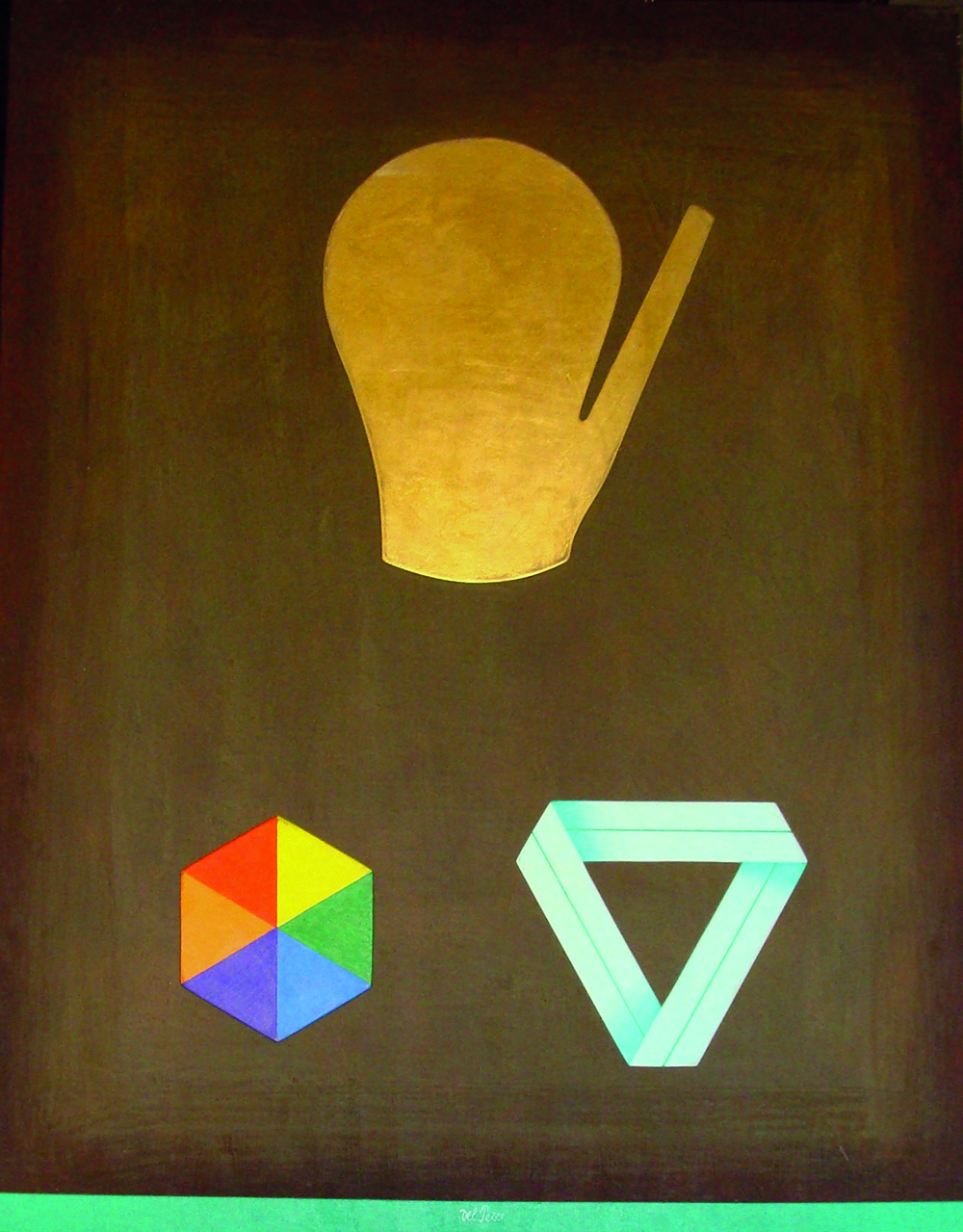 Lotto 90 | Lucio Del Pezzo" Alchemico" collage, acrilico, foglia oro su legno cm 75 x 60