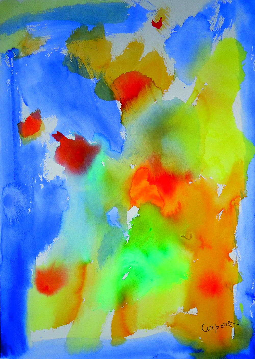 Antonio Corpora " Viaggio in Francia" acquerello su carta 36x51 del 2001 autentica dell'archivio Di Summa