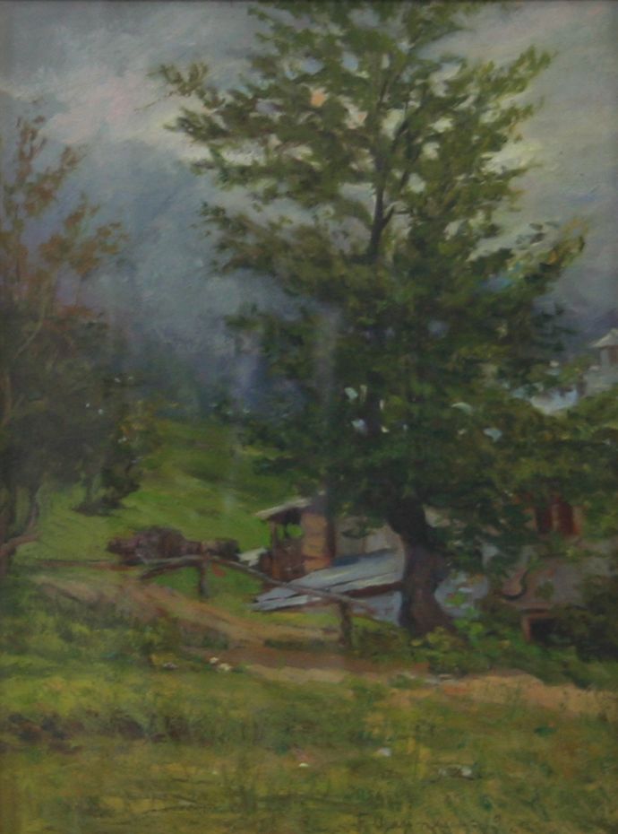 MARISALDI FALCO ELENA Santo Stefano Belbo (CN) 1901 - 1986 Torino "Paesaggio" 1920 41x31 olio su cartone Opera firmata e datata in basso a destra Già Galleria Pirra, Torino (etichetta al retro)
