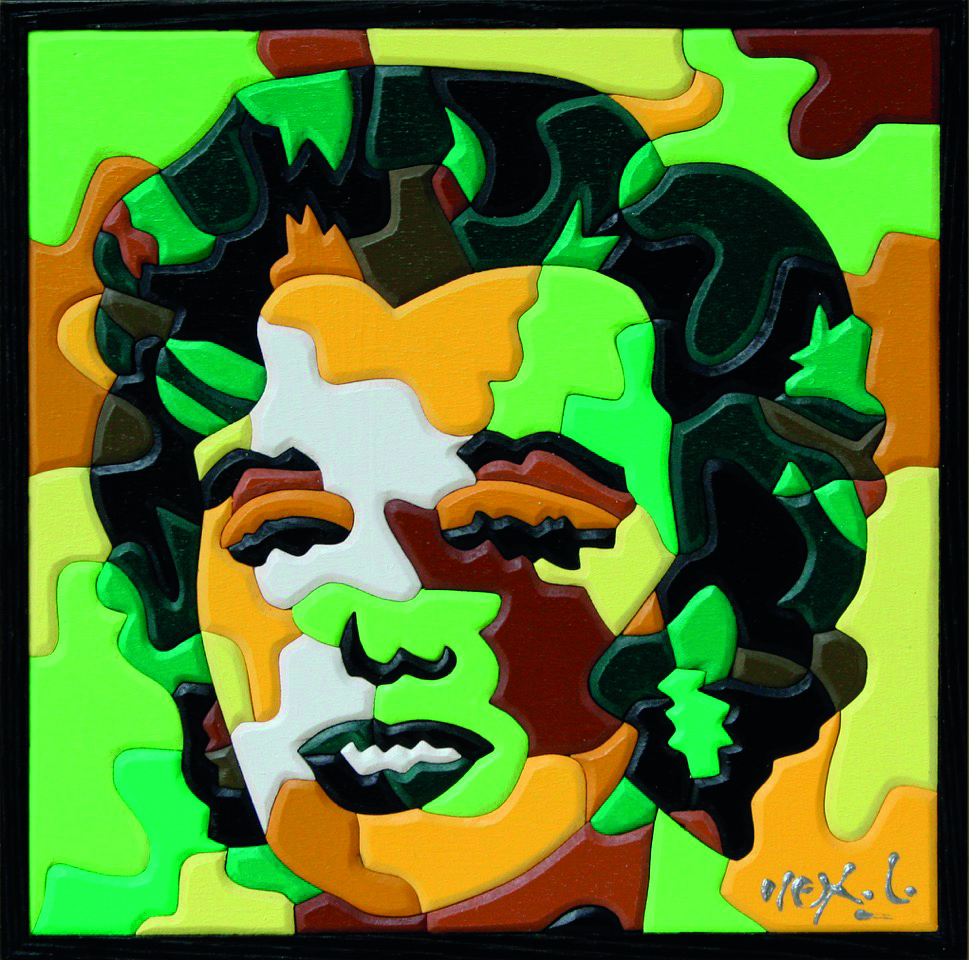 Lotto 108 | Ugo Nespolo intarsio acrilico su legno Fall cm 24x24 autentica Nespolo