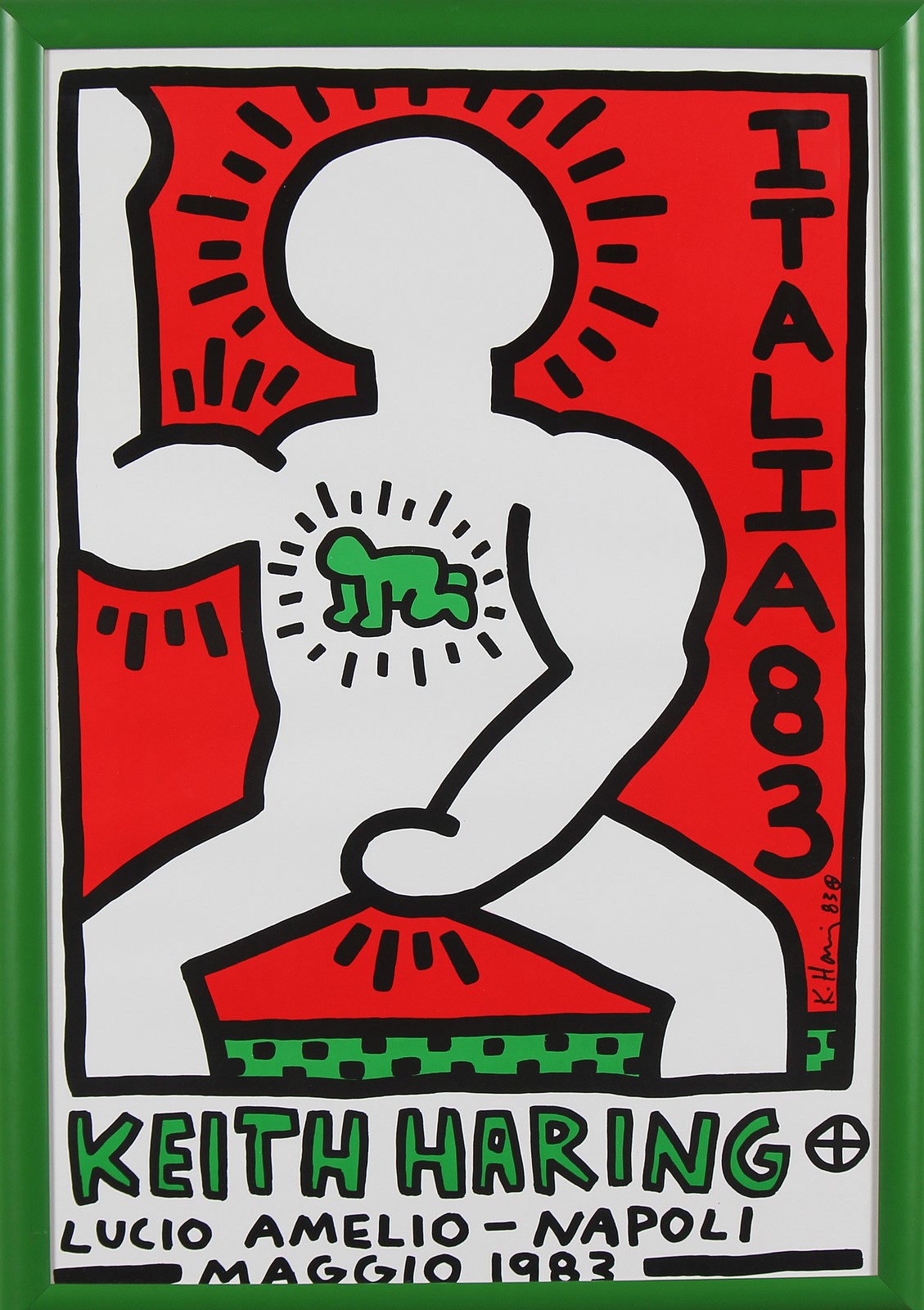 HARING KEITH (1958 - 1990) Senza titolo. Poster. Cm 69,00 x 47,00. Firma in...