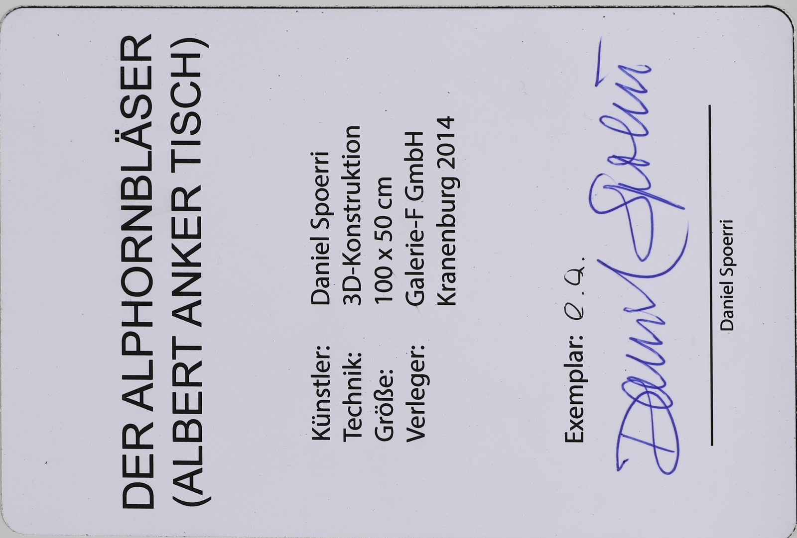 SPOERRI DANIEL (n. 1930) Der Alphornblaser. . Multiplo tridimensionale. Cm 50,00 x 100,00. E.A. Multiplo IN rilievo. Al retro cartiglio Galerie-F GmbH di Kranenburg.