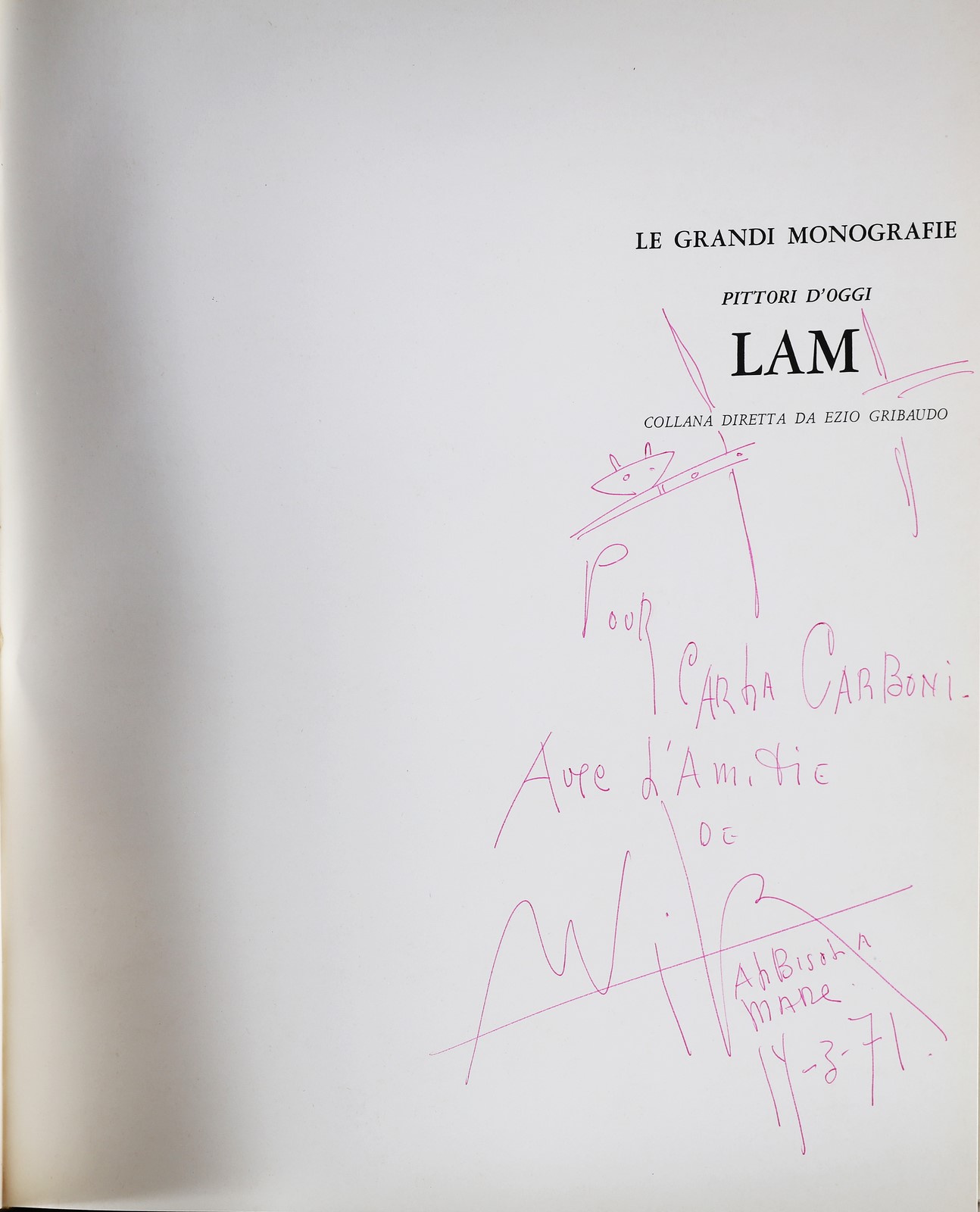 LAM WILFREDO (1902 - 1982) Lam ( Le grandi monografie). . Libro d'arte. Cm 26,50 x 32,00. Dalla serie Le grandi monografie pittori e scultori d'oggi, Michelle Leiris, Fratelli Fabbri Editore. Monografia delle ceramiche di Wilfredo Lam. Firmata e dedicata dall'autore.