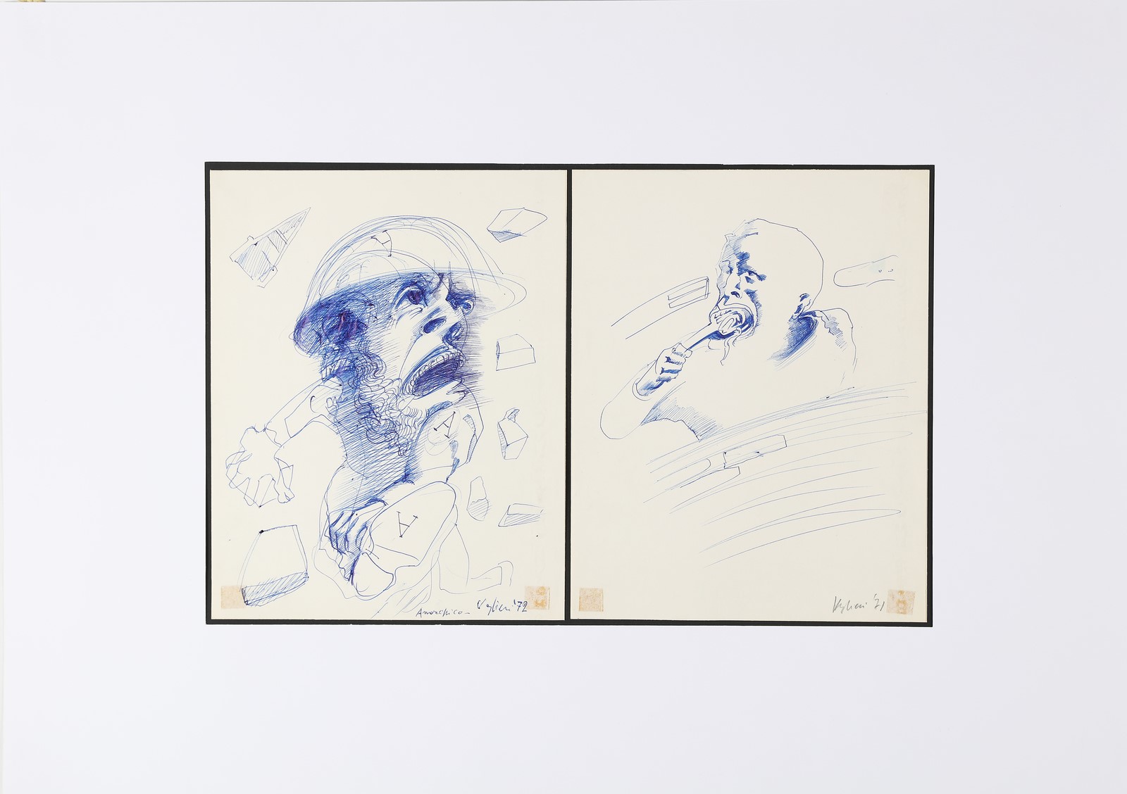 VAGLIERI TINO (1929 - 2000) Lotto composto da n. 2 disegni. Anarchico. . Biro su carta. Cm 70,00 x 50,00. Entrambi i disegni sono firmati e datati in basso a destra. Anno: 1971 e 1972. Dimensione singolo foglio 27x21 cm.