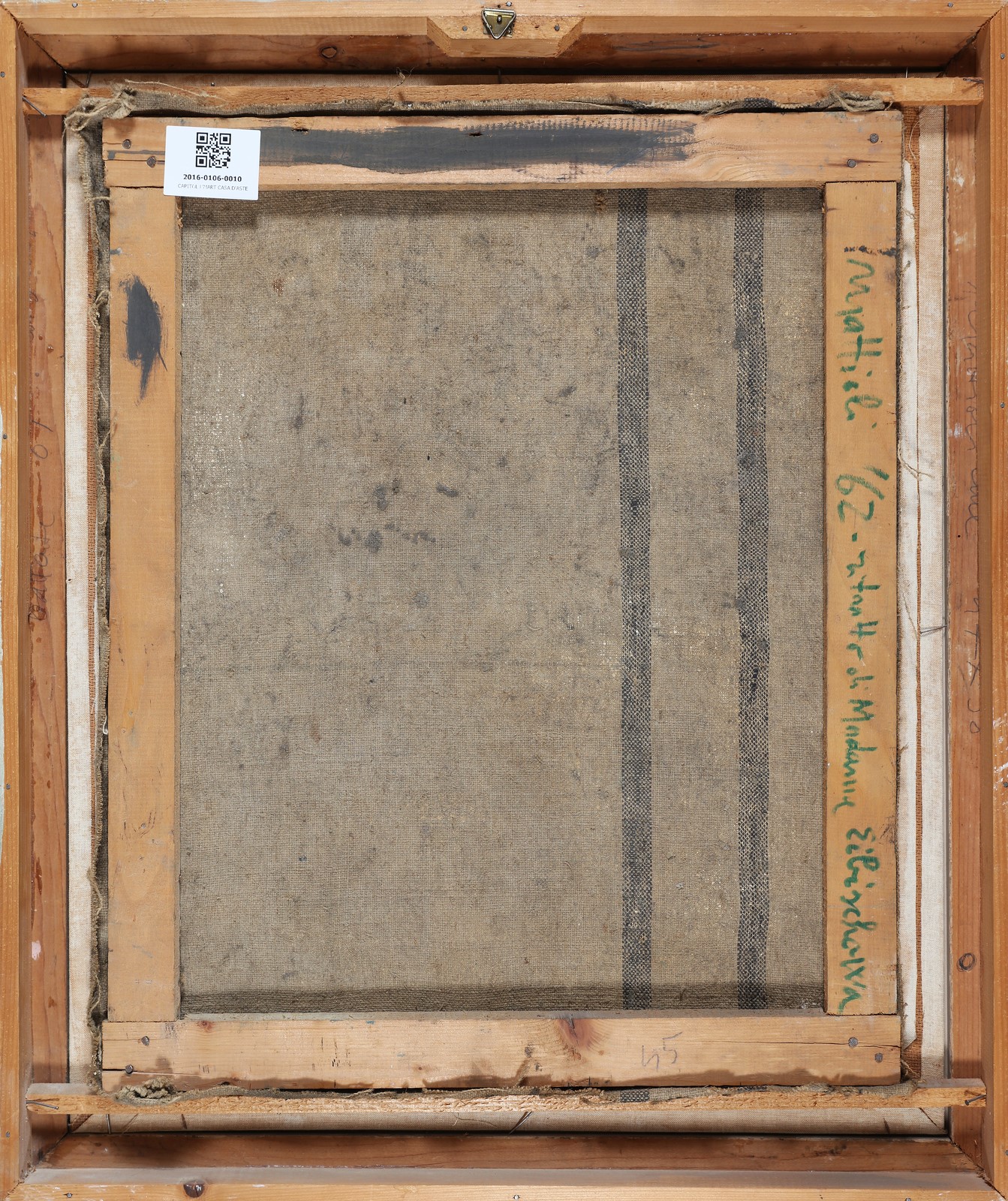 MATTIOLI CARLO (1911 - 1994) Ritratto di madame Eibischawa. 1962. Olio su tela . Cm 49,50 x 60,50. Firmato, datato e titolato al retro. Opera archiviata preso l'archivio Mattioli, Parma, come da documentazione fotografica allegata all'opera riportante il relativo numero d'inventario.