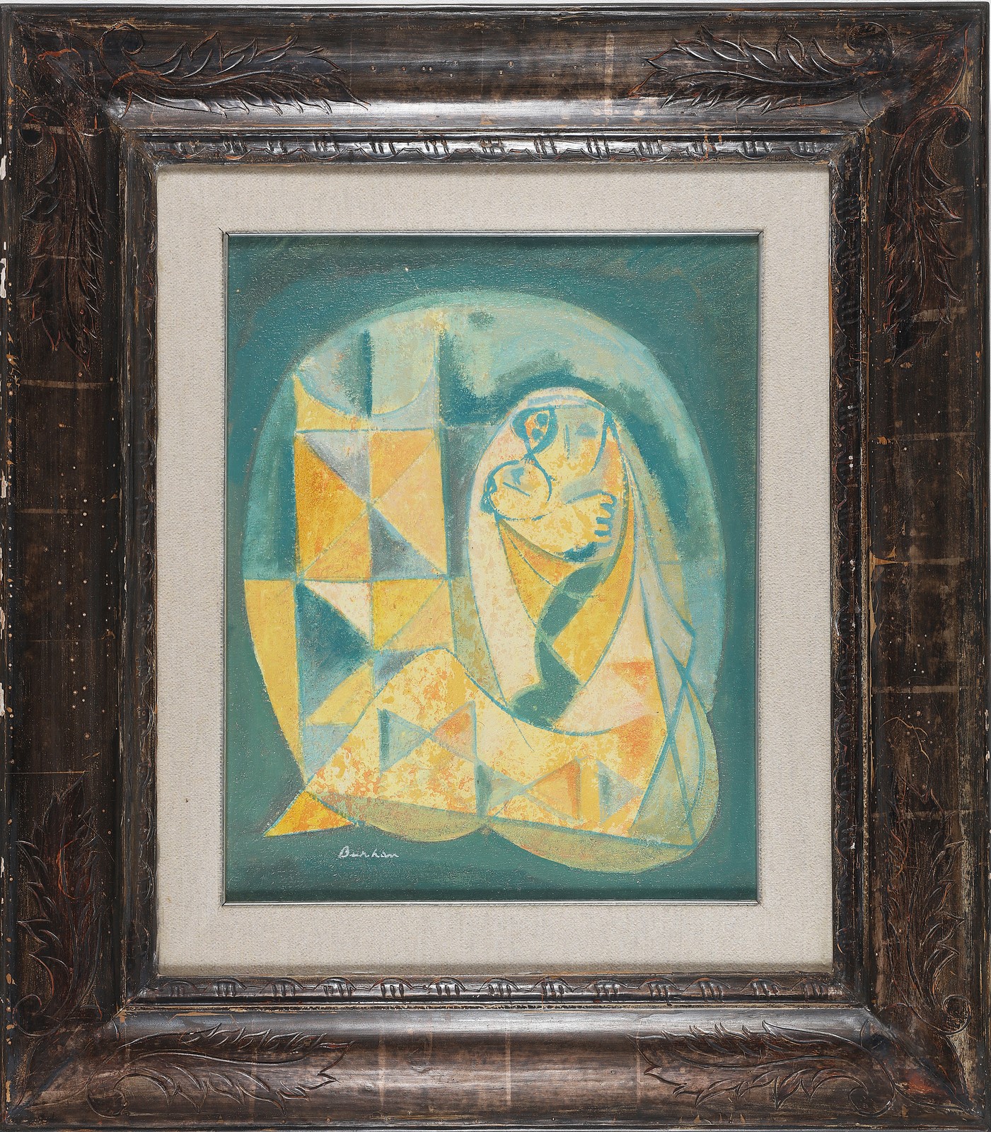 BURHAN SAMI (n. 1929) Madonna con bambino. . . Cm 40,00 x 50,00. Firma in basso a sinistra. . Cornice presente