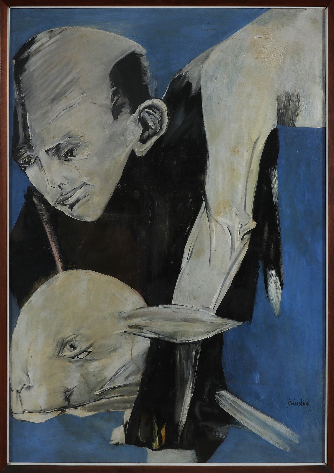 BRINDISI REMO (1918 - 1996) Pastorale. . 1962. Olio su tela . Cm 60,00 x 90,00. Firma in basso a destra. Opera archiviata presso l'Archivio Remo Brindisi, Galleria Pace Milano, come da documentazione fotografica allegata all'opera riportante il relativo numero d'inventario. Cornice presente