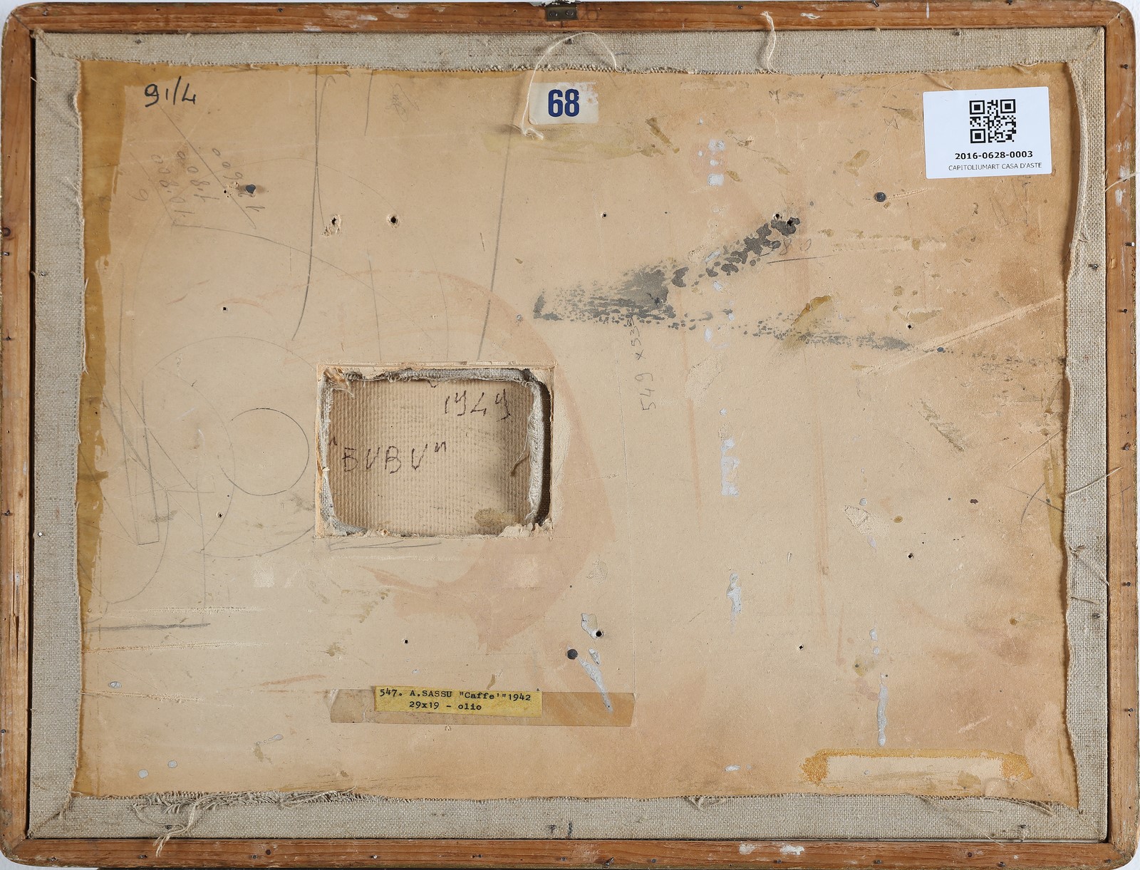 SASSU ALIGI (1912 - 2000) Bubu. . 1944. Olio su faesite. Cm 29,00 x 19,00....