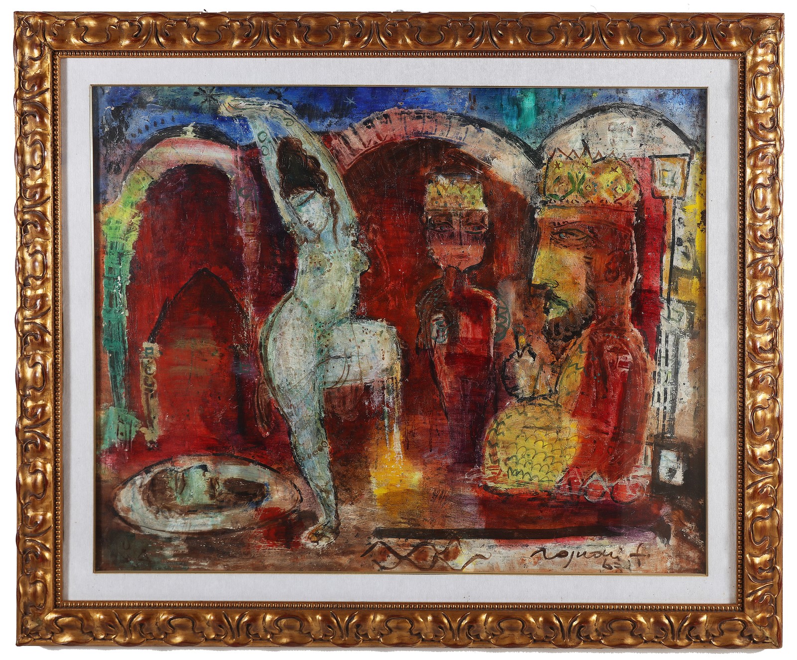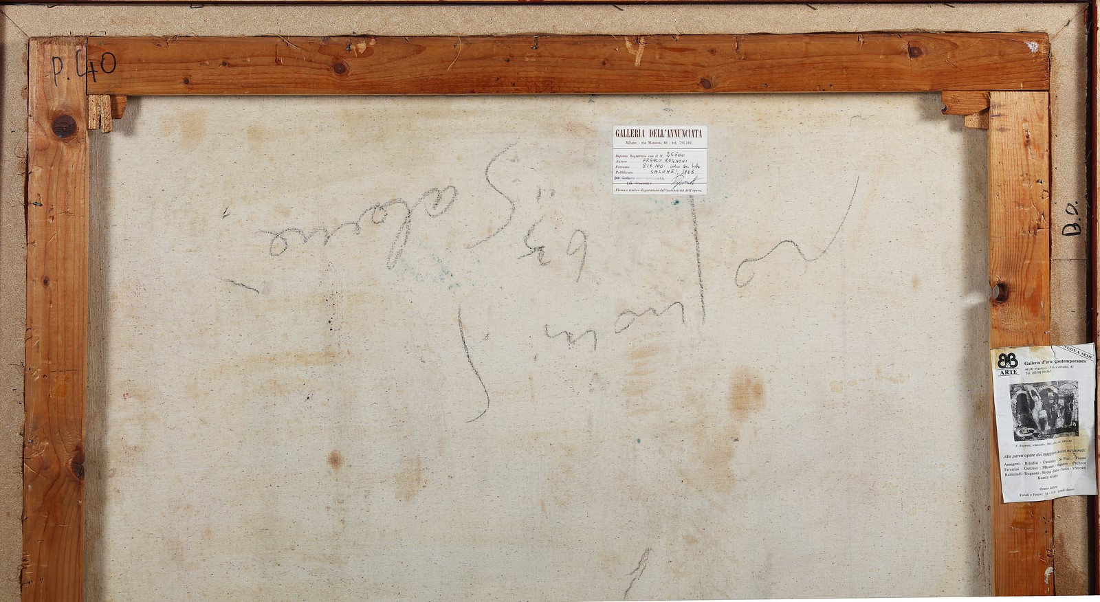 ROGNONI FRANCO (1913 - 1999) Senza titolo. . 1963. Olio su tela. Cm 100,00 x 81,00. Firma e anno in basso a destra. Al retro firma e anno. Cartiglio Galleria Annunciata, Milano. Autentica su fotografia a cura dell'artista. . Cornice presente