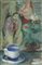 DA MILANO GIULIO F 1895 - 1990 Torino "Interno con pittore, modella e tazza blu" 1933 32x21 olio su tela Opera firmata e datata in alto a sinistra Già Galleria Quaglino Incontri, Torino (etichetta al retro)