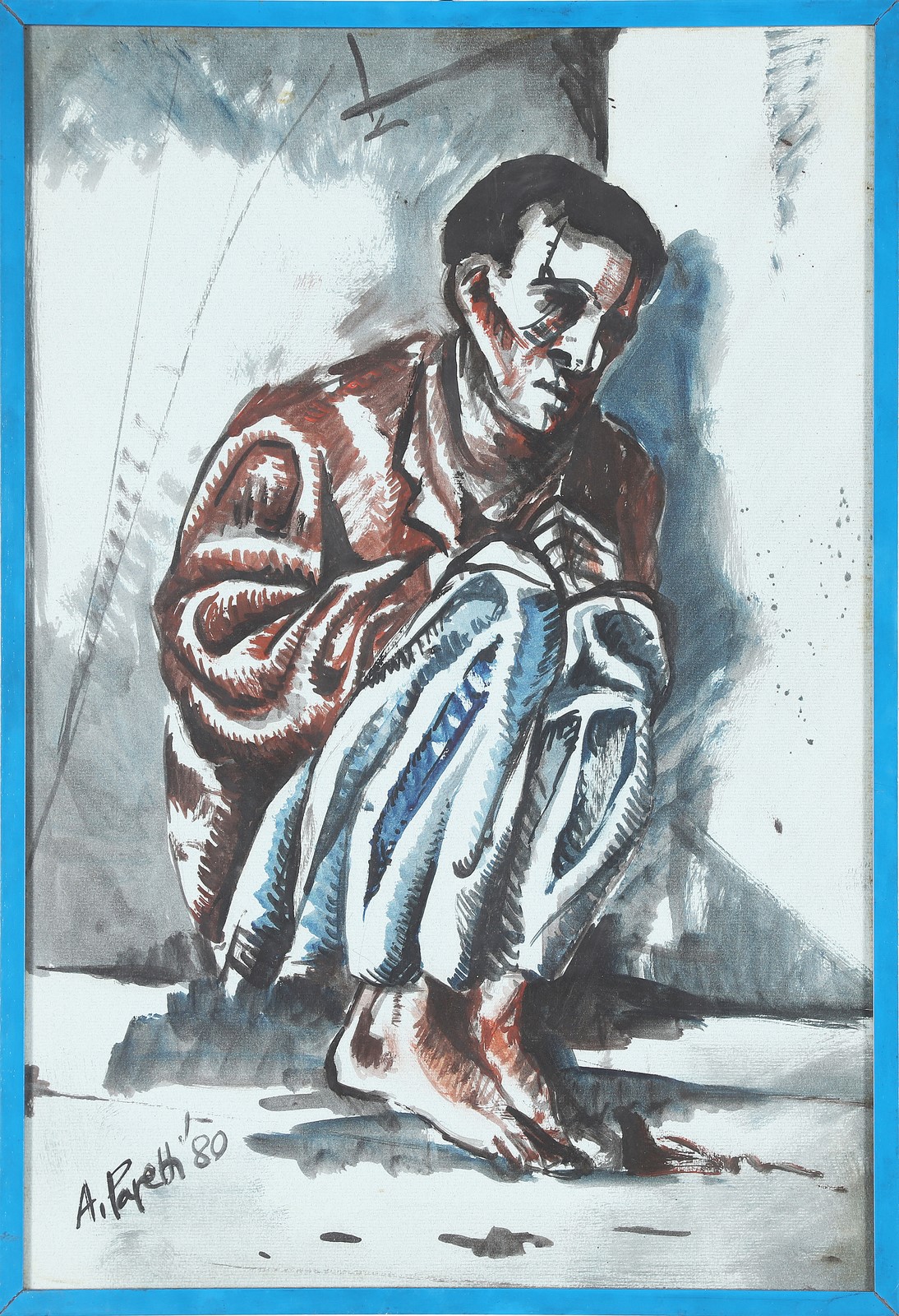PAPETTI ALESSANDRO (n. 1958) Ebreo. 1980. Tecnica mista su carta. Cm 33,50 x 48,50. Firma e anno in basso a sinistra. Cornice presente