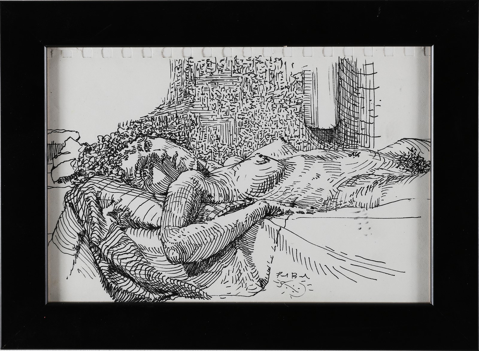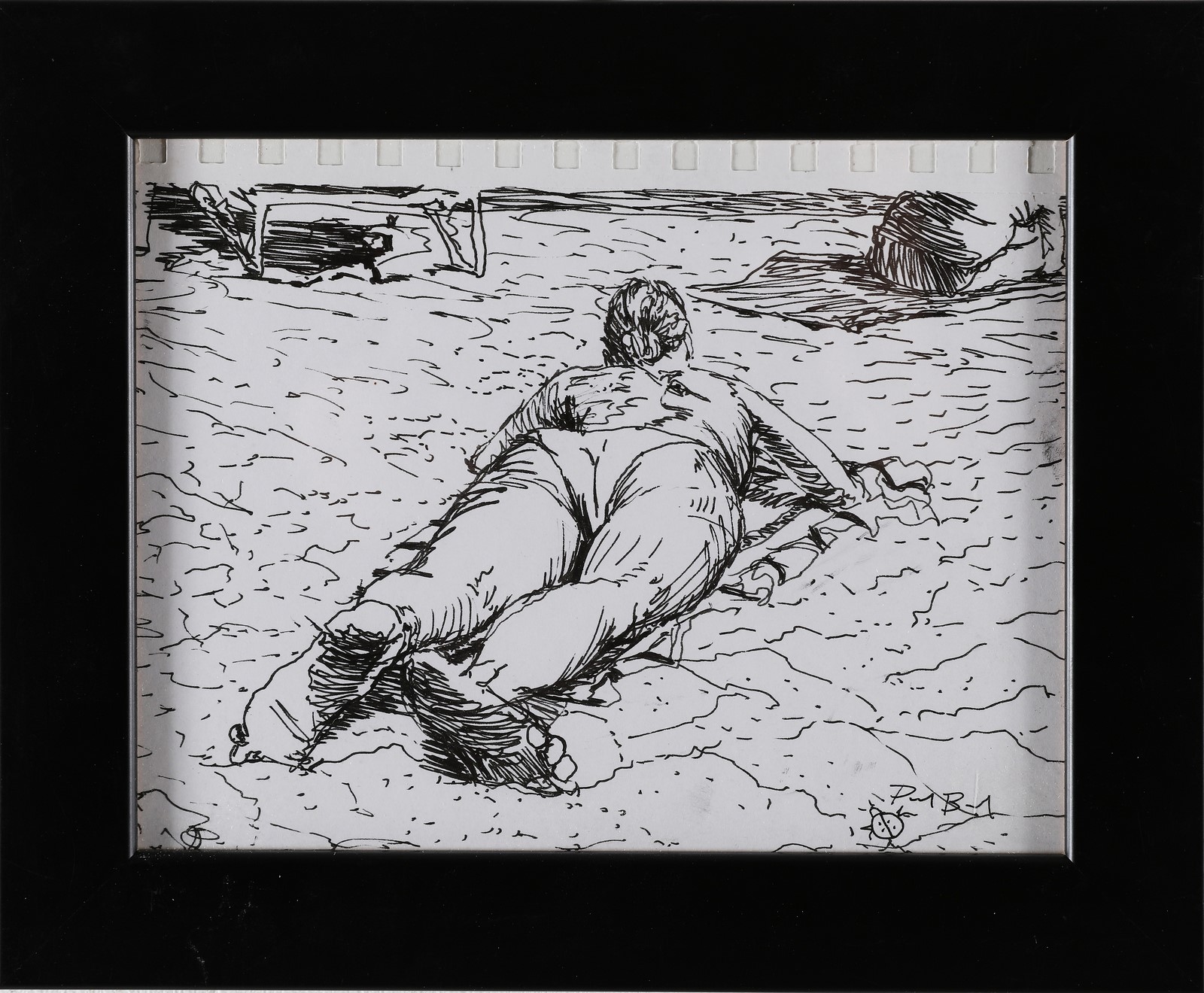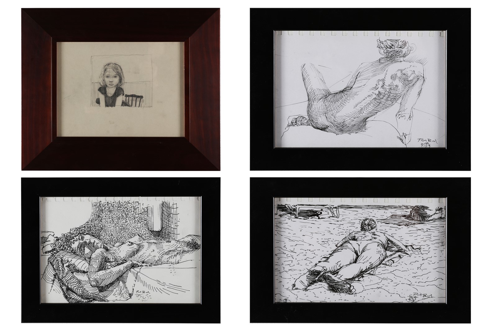 BEEL PAUL (n. 1970) Lotto composto da 4 disegni. . China su carta. Cm 30,00 x 25,00. Nudo femminile, 17x21 cm, firma in basso a destra. Nudo in spiaggia, 17x20 cm, firma in basso a destra. Nudo femminile, 17x24 cm, firma in basso. Testa di bambina, matita su cartoncino, con cornice, 25x30 cm. . Cornice presente
