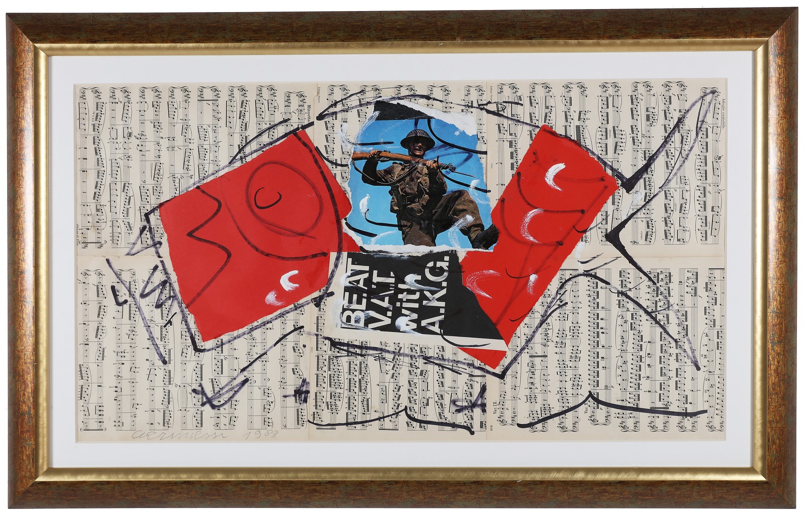 CARMASSI ARTURO (n. 1925) Anno. . Tecnica mista e collage su cartone. Cm 80,00 x 45,00. Autentica su fotografia a cura dell'artista. . Cornice presente