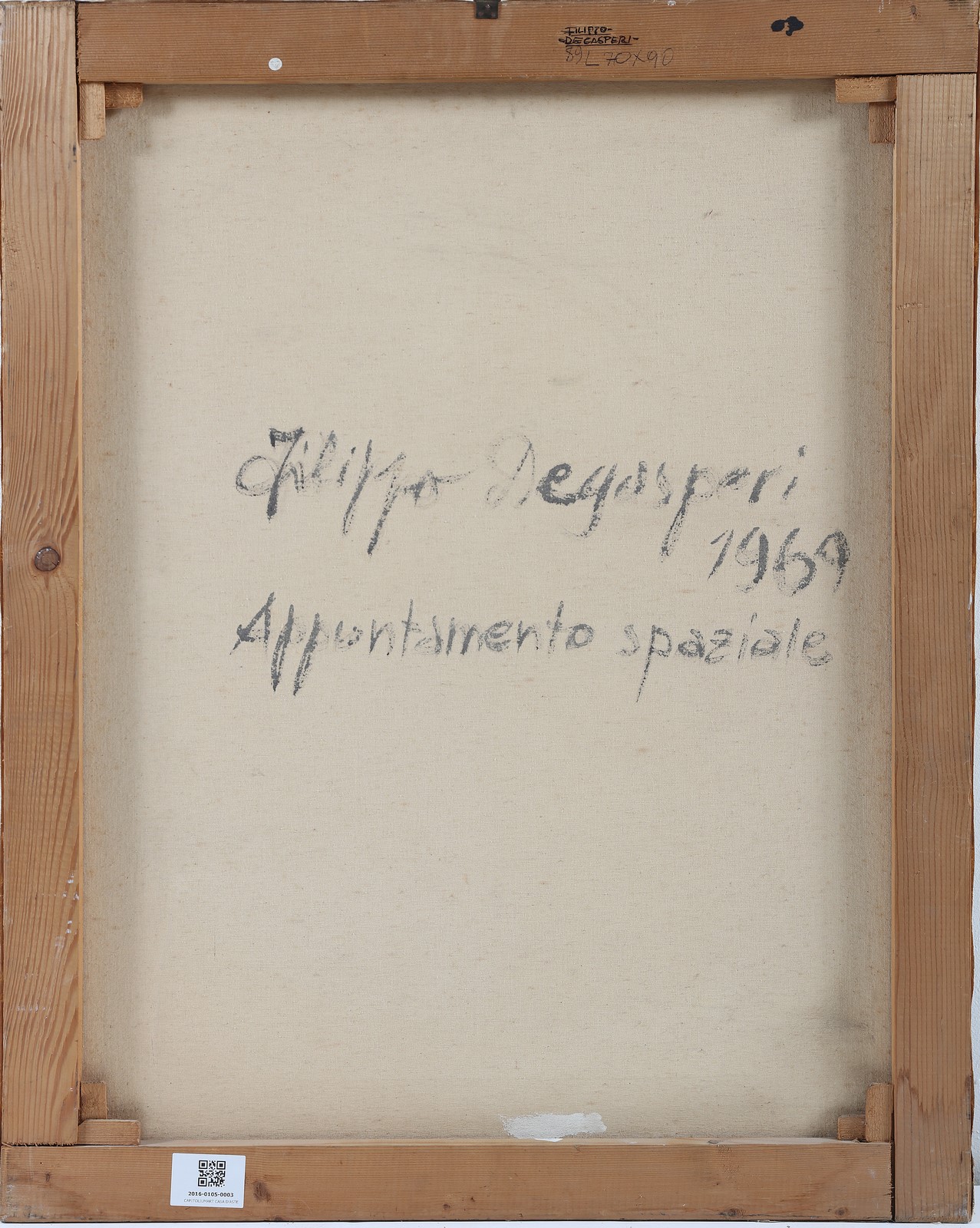 DE GASPERI FILIPPO (n. 1928) Appuntamento spaziale. 1969. Olio su tela. Cm 70,00 x 90,00. Firma titolo e anno al retro.