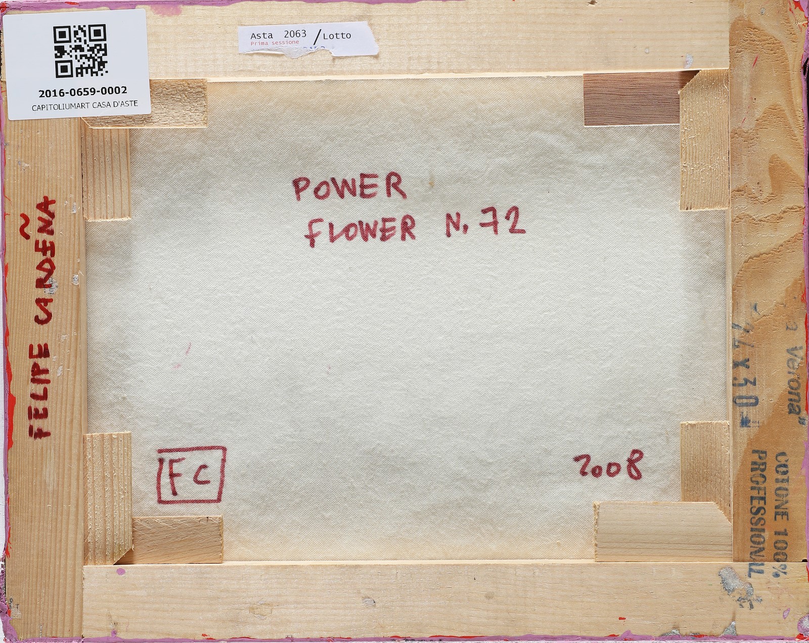 CARDENA FELIPE (n. 1979) Flower Power n. 72. . 2008. Tecnica mista su tela. Cm 30,00 x 24,00. Al retro titolo, firma e anno.