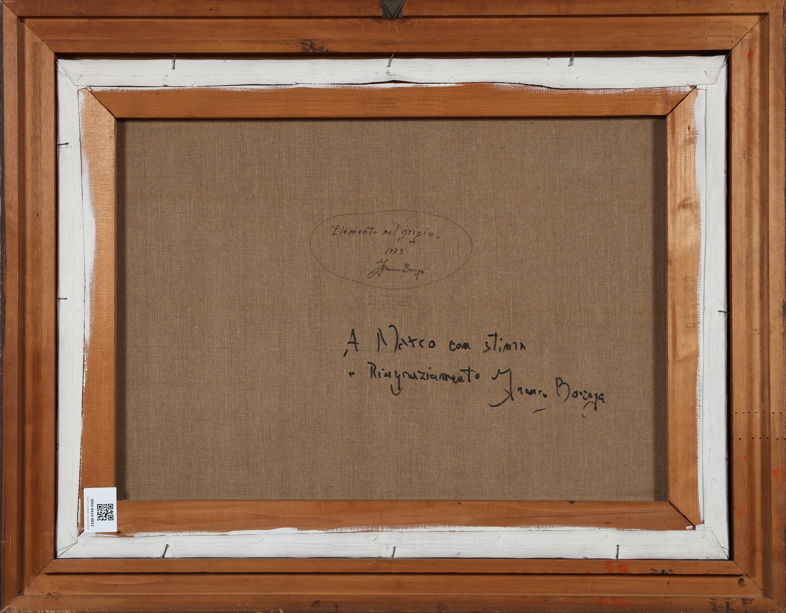 BORGA FRANCO (n. 1937) Elemento nel grigio. 1973. Olio su tela . Cm 60,00 x 80,00. Al retro titolo, firma e anno. Autentica dell'artista su fotografia. Cornice presente