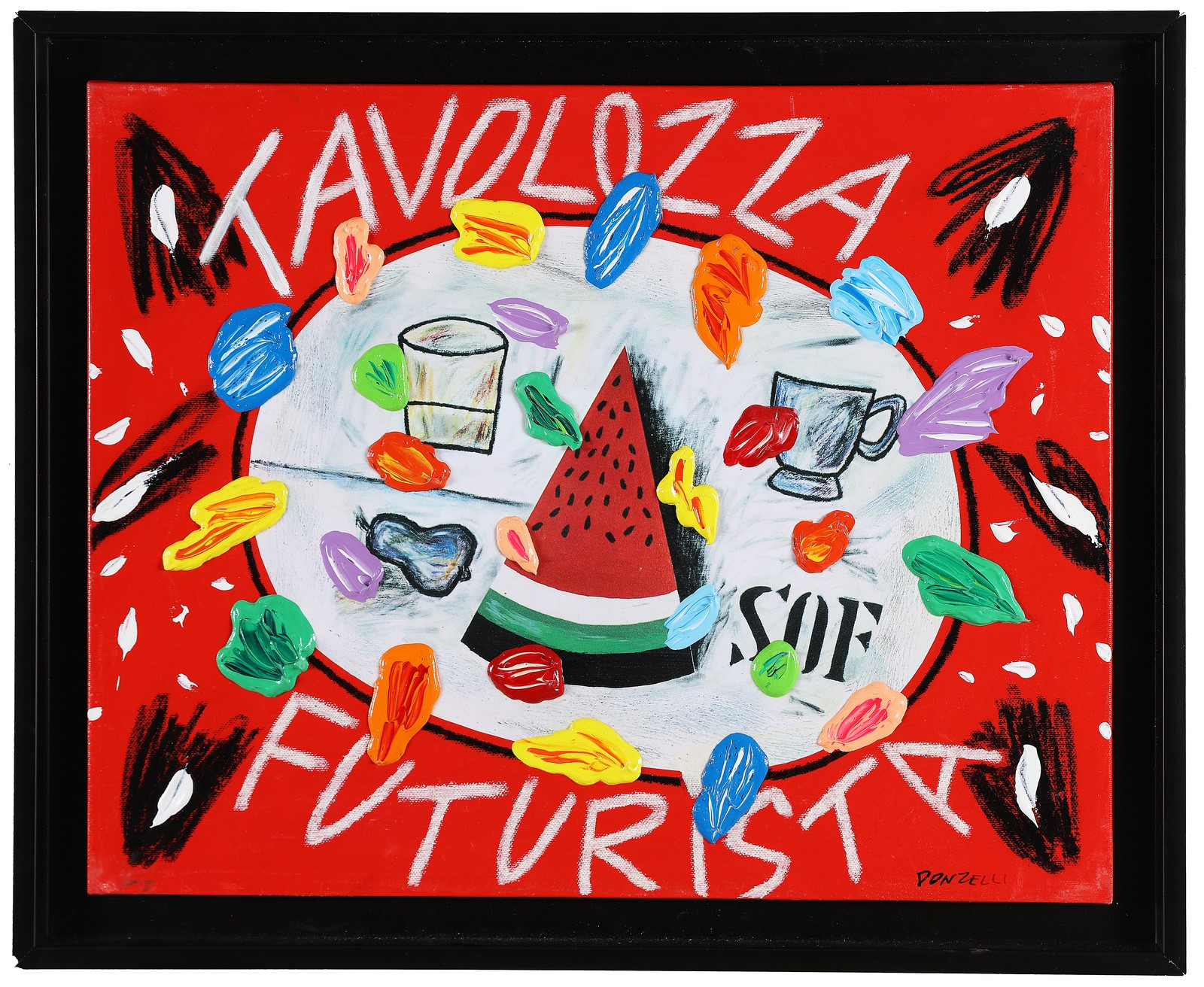 DONZELLI BRUNO (n. 1941) Tavoletta futurista. . Olio su tela. Cm 50,00 x...