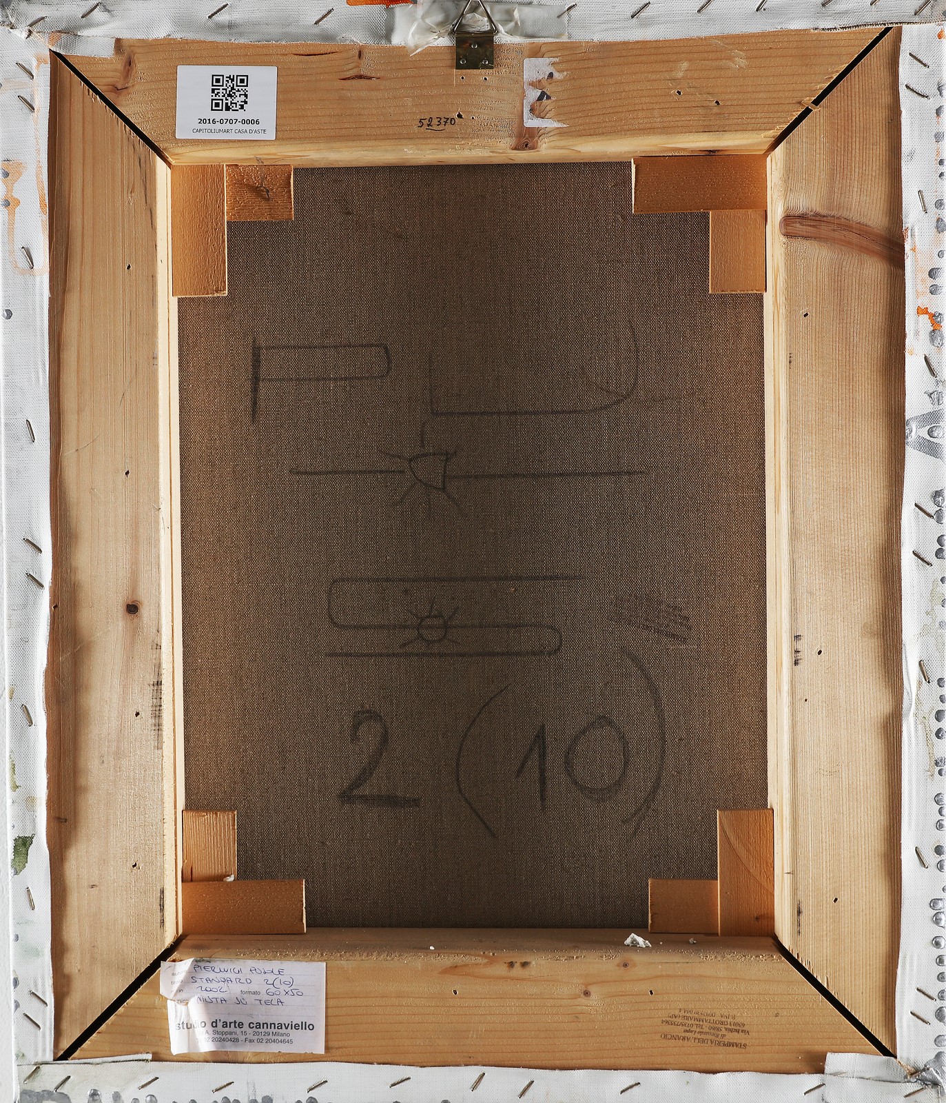 PUSOLE PIERLUIGI (n. 1963) Standard 2. . 2002. Tecnica mista su tela. Cm 50,00 x 60,00. Al retro cartiglio descrittivo a cura di Studio d'Arte Canaviello, Milano. Autentica su fotografia a cura di Enzo Cannaviello. . Cornice presente