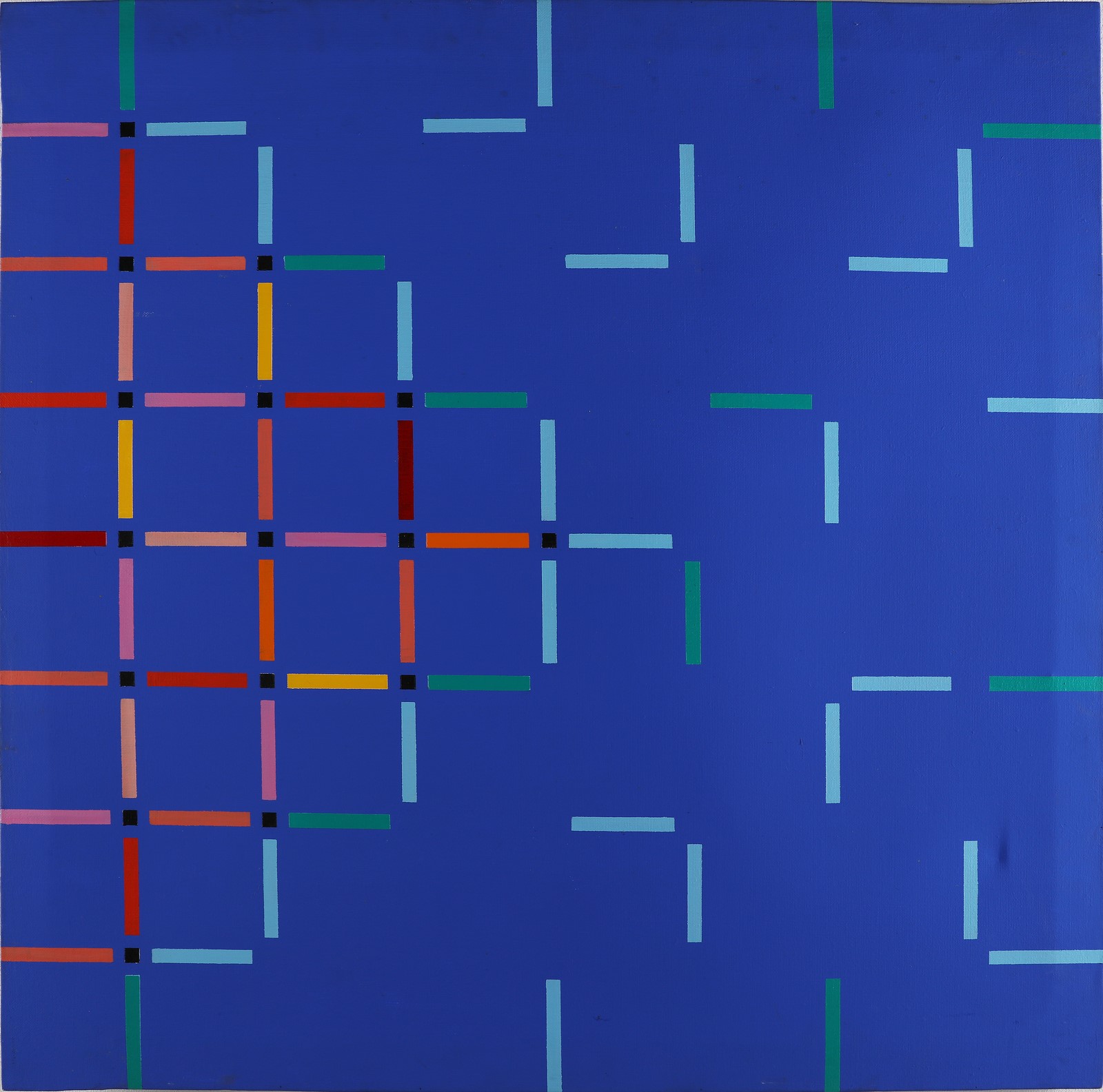 DOZIO ANGELO (n. 1941) H9. Acrilico su tela. Cm 80,00 x 80,00. Firma e titolo al retro.