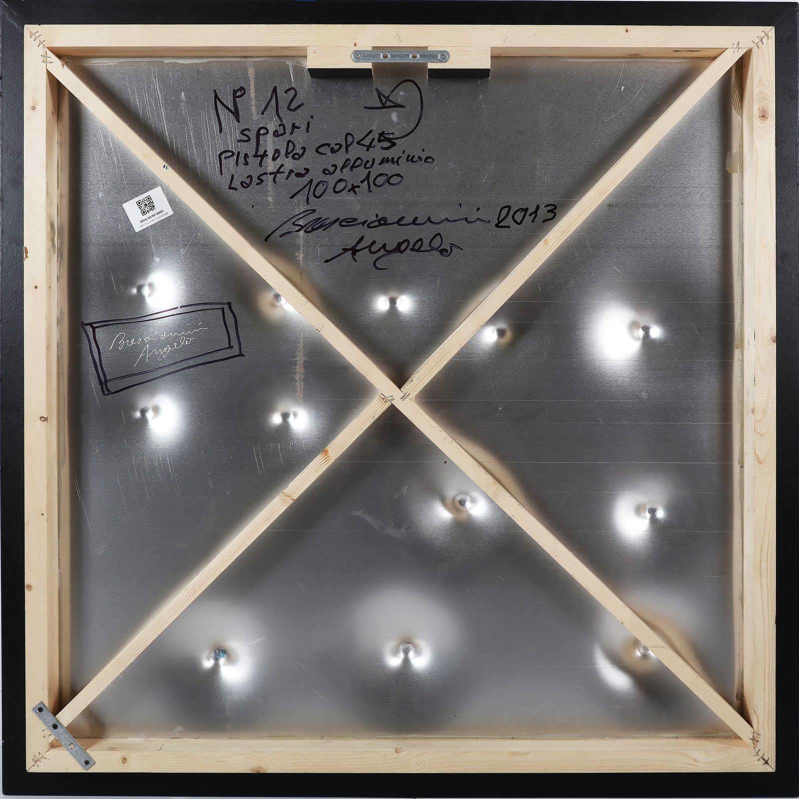 BRESCIANINI ANGELO (n. 1948) 12 spari di pistola. 2013. Intervento su lamiera. Cm 100,00 x 100,00. Al retro titolo, firma e anno. Autentica dell'artista su fotografia.