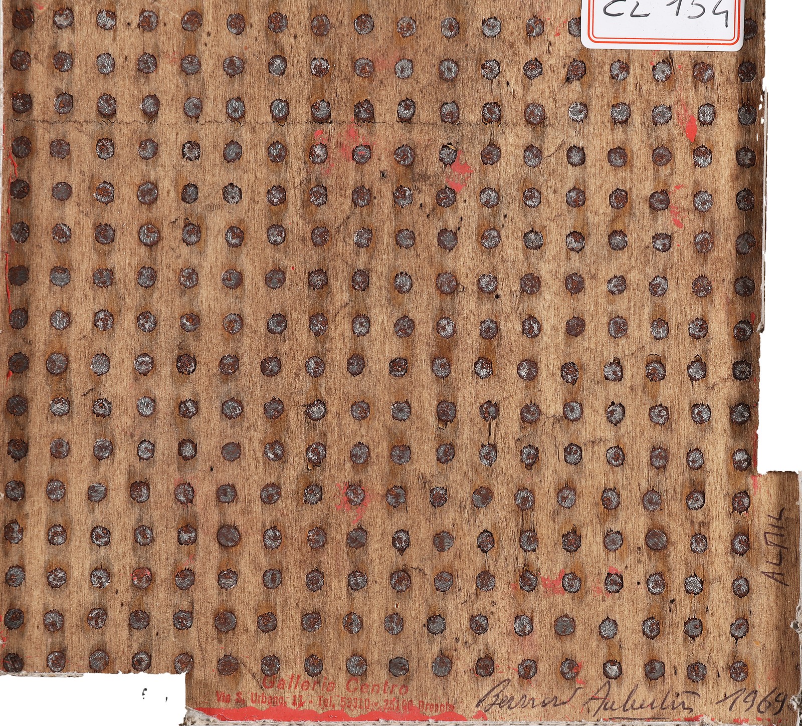 Lotto 469 | AUBERTIN BERNARD (1934 - 2015) Tableau Clous. . 1969. Chiodi su tavola. Cm...