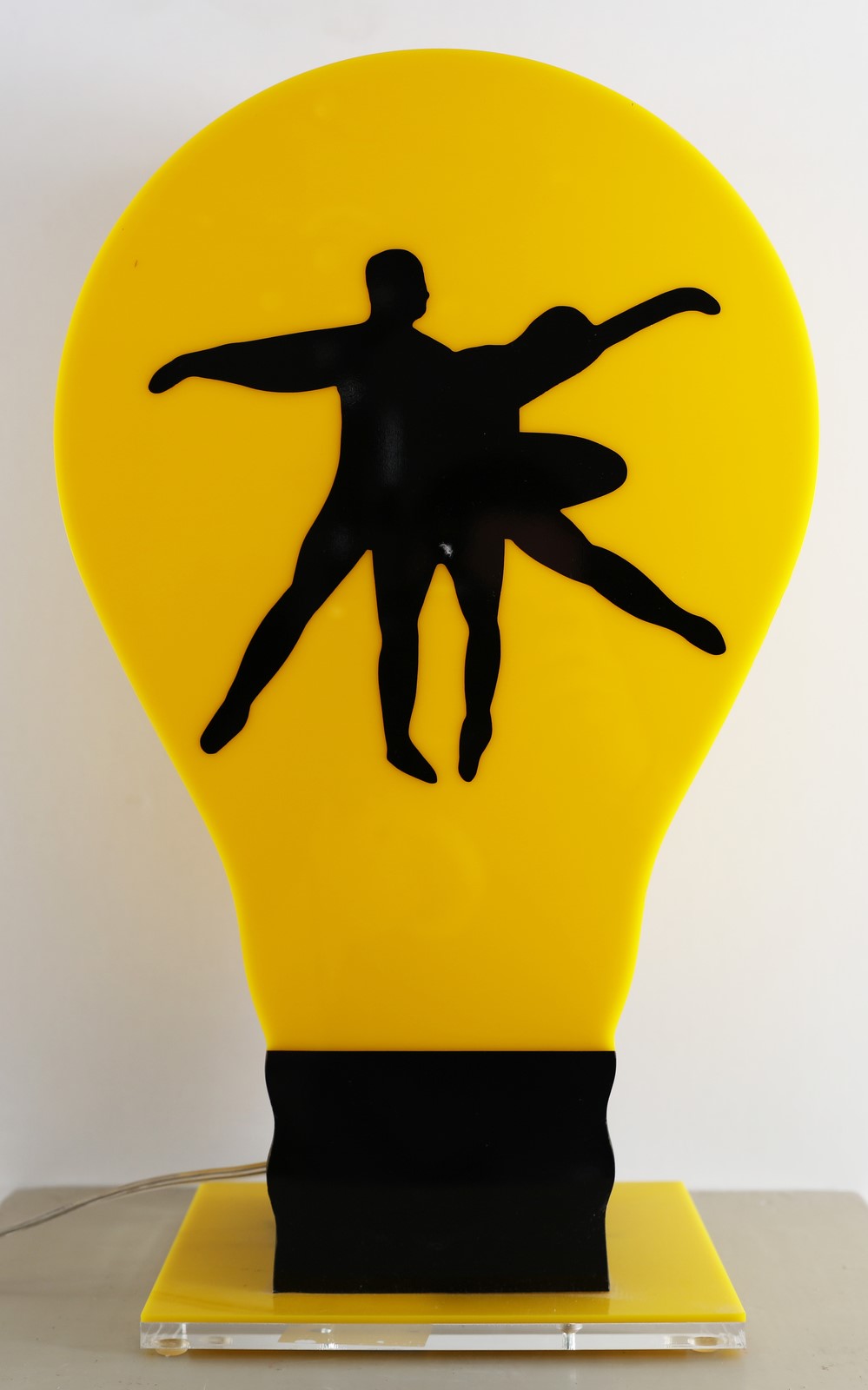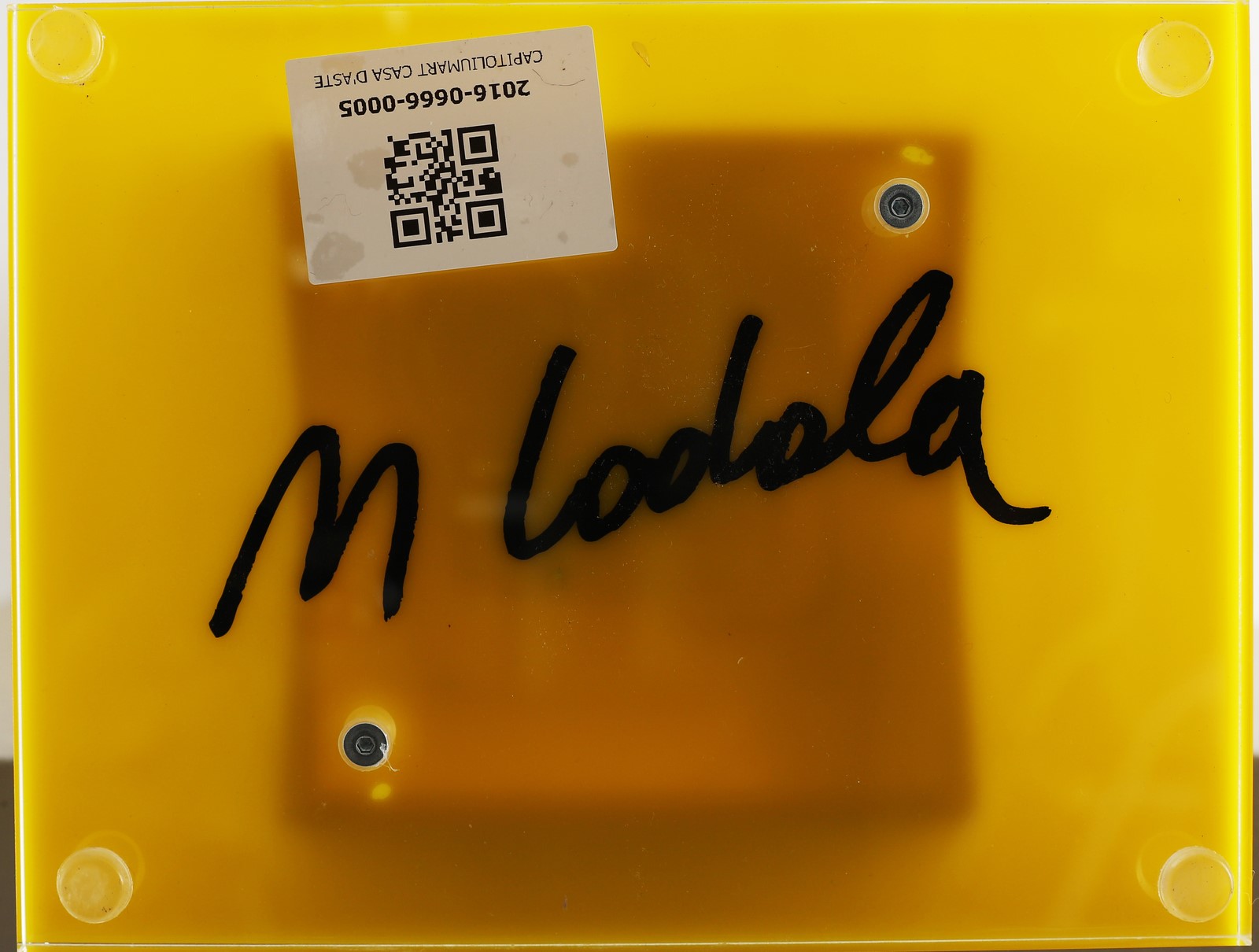 LODOLA MARCO (n. 1955) Luminosa da appoggio. . Scultura. Cm 30,00 x 47,00. Firma alla base.